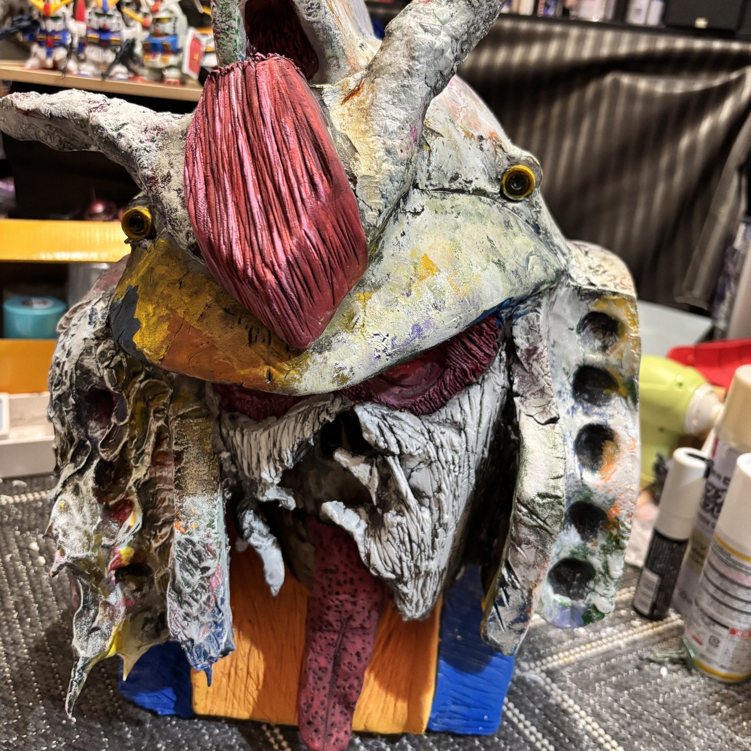 怖いけど、gunsoさんの中では完成形がしっかりイメージ出来てる感じがしますね。カラフルからの白はなるほどな仕上がりですね。 完成作品デビルガンダムになってますよ、かっこいいけど😙