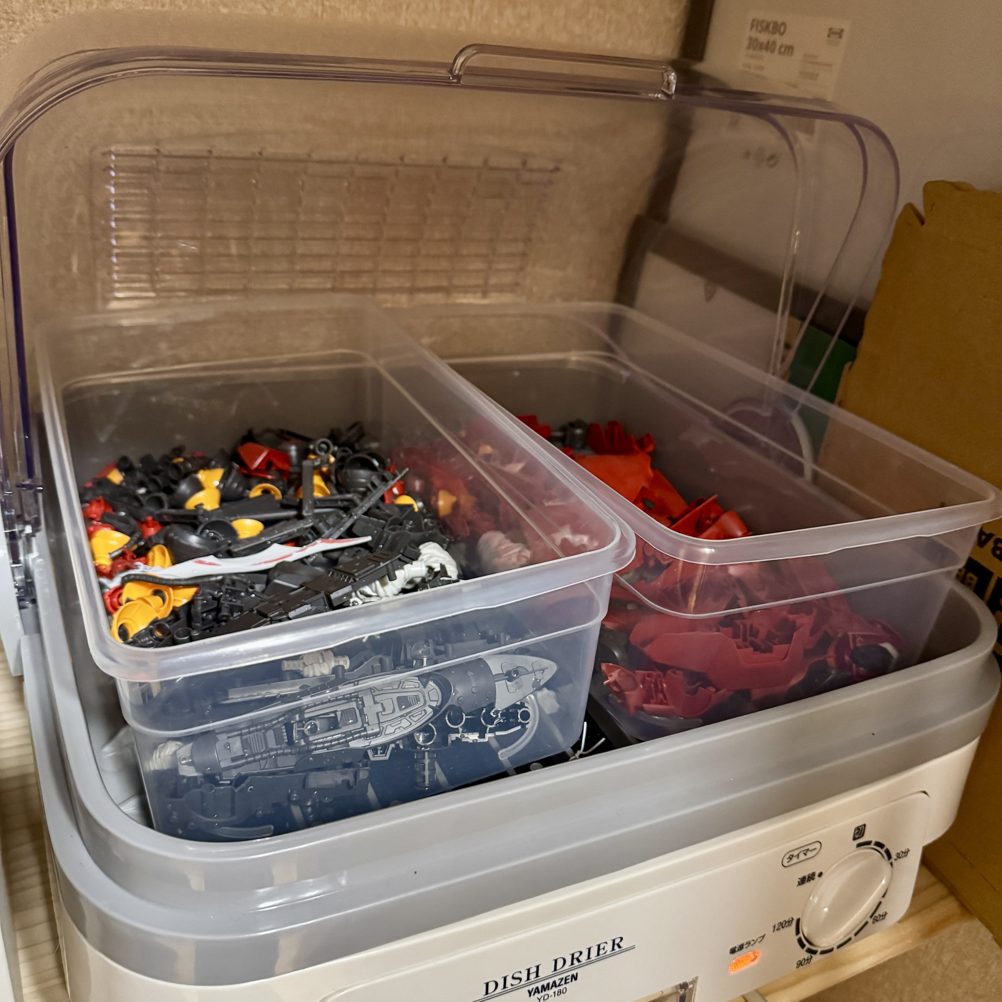 Mosu 2025.10/31更新 神ケース 32 16 いいねしたモデラー(16) 0 作品を共有 ダイソーのお気に入りプラケース。サイズと使い勝手が素晴らしく20コ近くスタッキングしてます。で、気づいてしまった。耐熱温度120℃ある上、乾燥機にシンデレラフィット(gundam-kao3) 洗う→乾燥→保管。ホコリ避けにもなってやっぱり優秀です! 制作中 コメント コメントをして応援しよう コメントにはログインが必要です Mosu だいたい年に1作のペースで制作。 300年くらい生きたら上手くなれる気がする。 息子と一緒に作れるようになるのが楽しみ。 でしたがポケモンとマイクラに全部もっていかれました。 いやポケカ普通に面白いんですが笑 家事育児でほぼ占拠された中、制作だけじゃなく何かやりたいな〜と漫然と画策中。 Mosuさんがお薦めする作品 ARZ-125 REHAIZE〈リハイゼ ティターンズ鹵獲仕… ARZ-125 RE-HAIZE【んどぱら屋さんガレージキッ… HAZE’N-THREY II RAH <MS形態> +拡張… Hi-ν GUNDAM +ハイパー・メガ・バズーカ・ランチャ… 6 ORX-013 ガンダムMk-V 【オリジナルカラー】 今回は【悪役】をテーマに色選びとポージングにこだわりました。… 6 MG サザビー Ver.ka 何を思ったのか白く塗りたくなったサザビー。 なんか制作した物… 6 MG ヘイズル・ラー 第二形態 作り溜め作品です。 MGヘイズル改+フルドド2機で、ヘイズル… 5 GP04 ガーベラ RE 1/100 GP04 ガーベラです。 撮影機材引っ張り… Mosuさんのページ