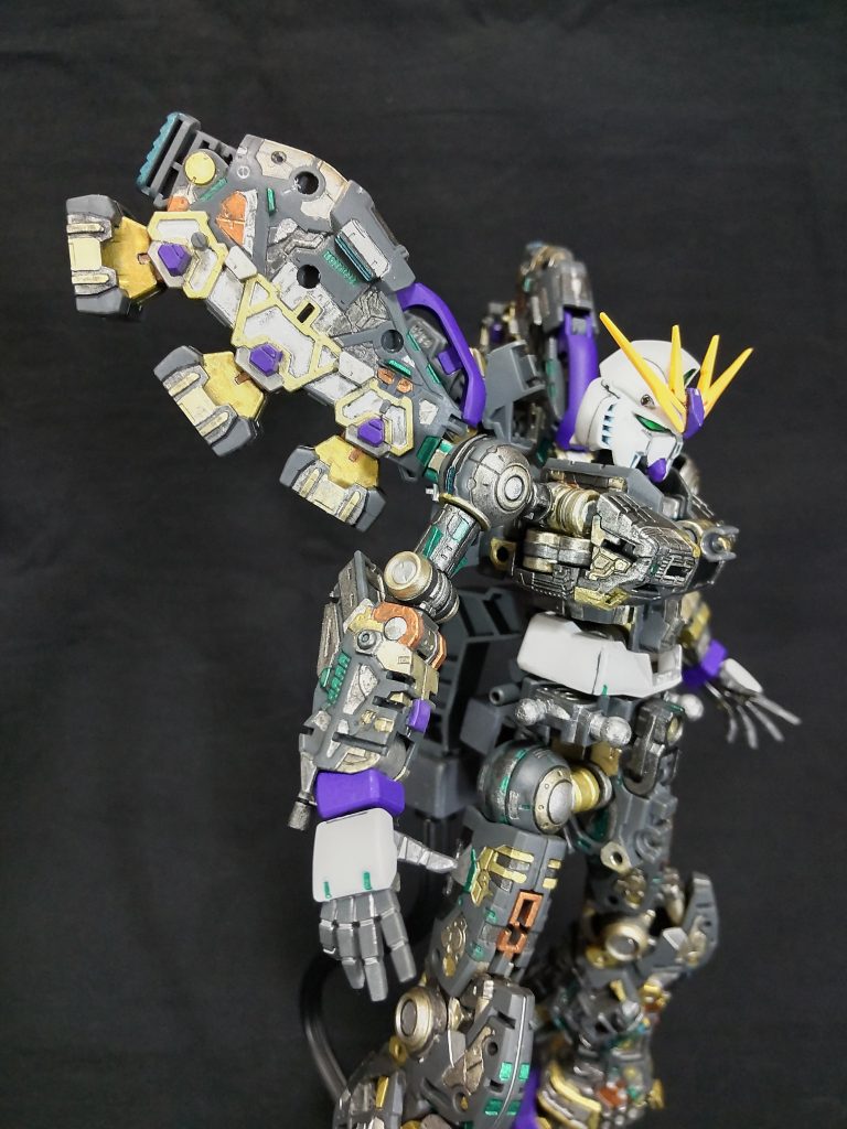 今回は、駆動しそうなところは、ゴールドの中にシルバーがくるように配置してみました😄。スラスターとかバーニアは青竹色、サイコフレームぽいところは、グリーンメタリック😆。