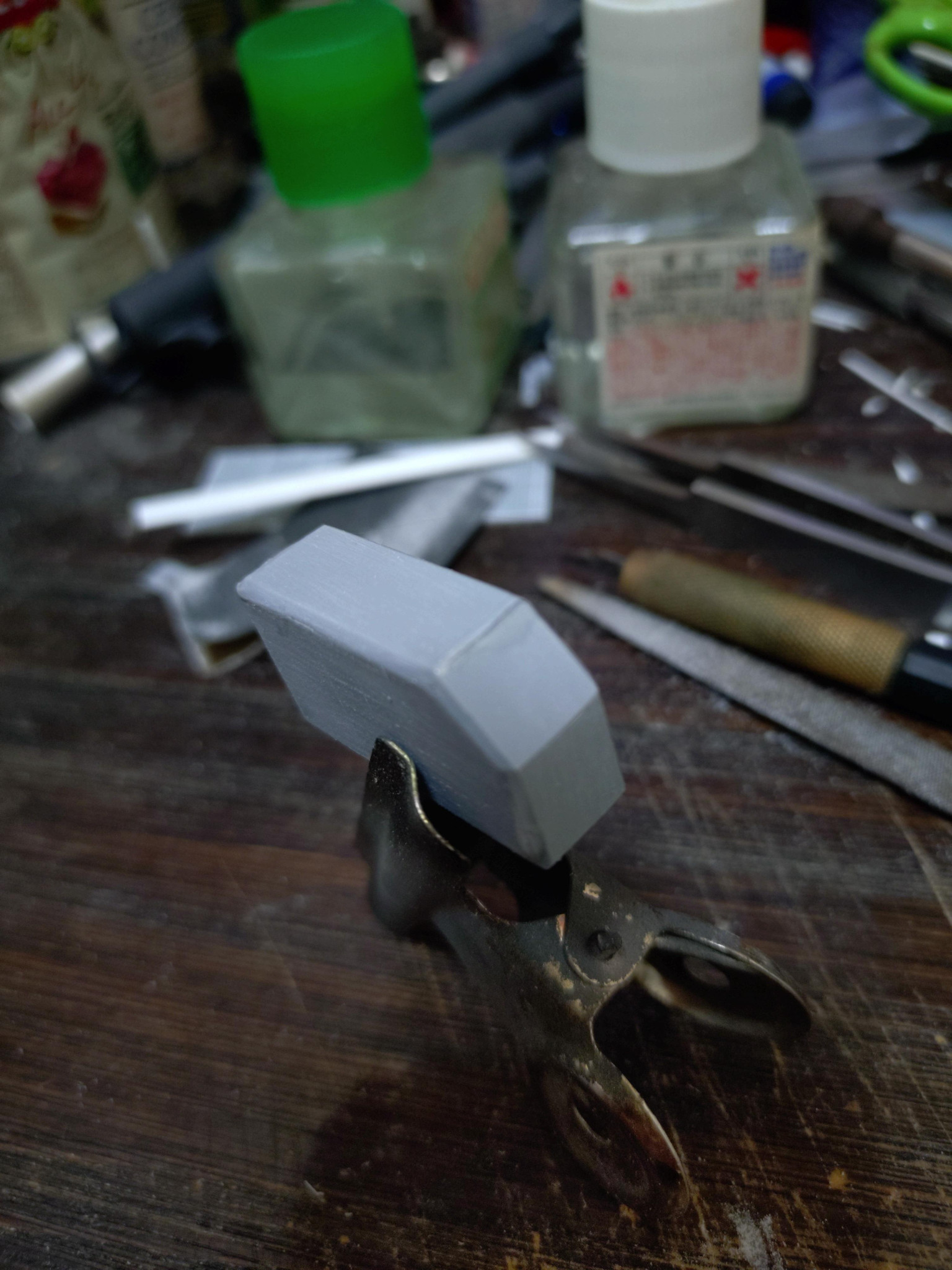 カナヤスリである程度平らにした後にデザインナイフでカンナ掛けして真っ直ぐなエッジになるようにしてますねぇ
