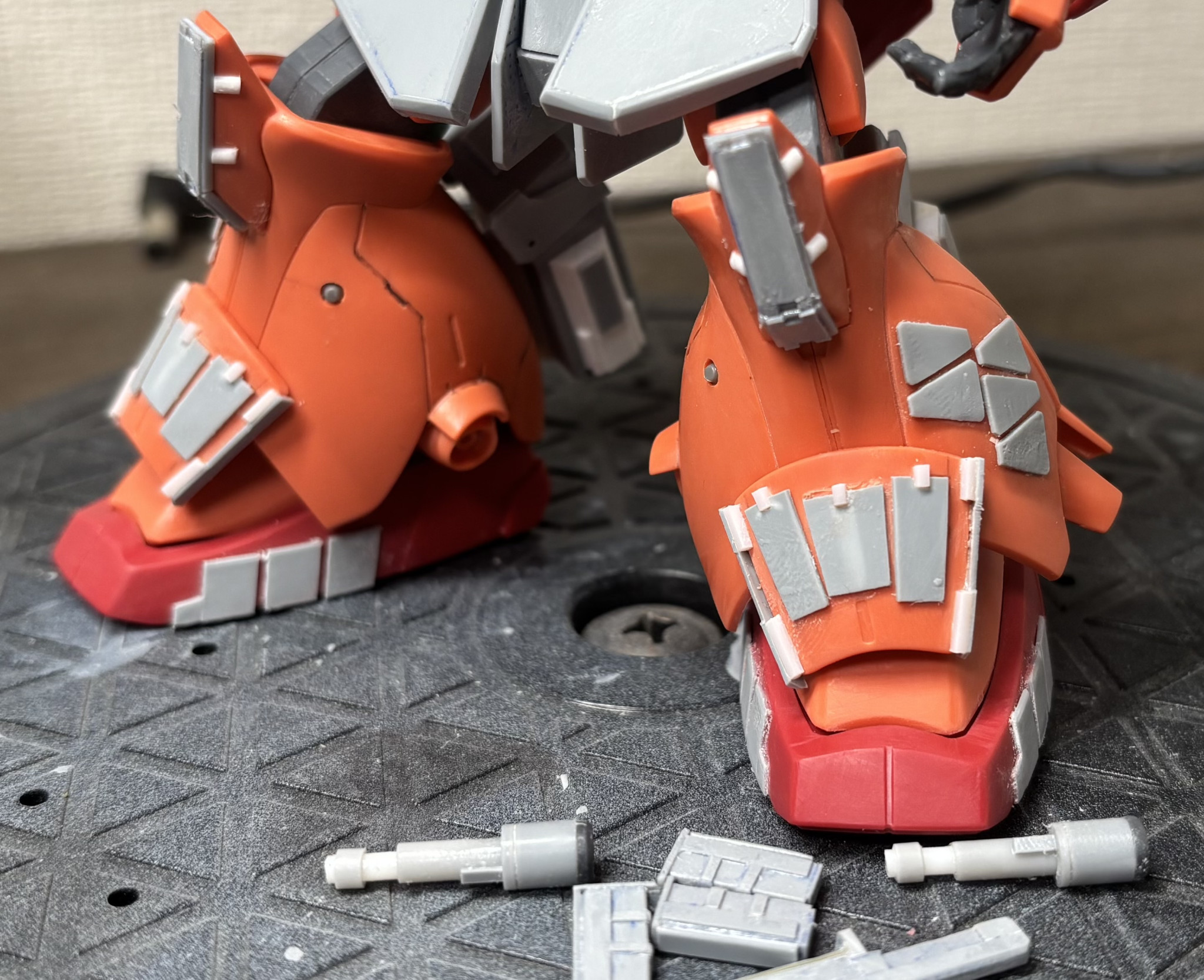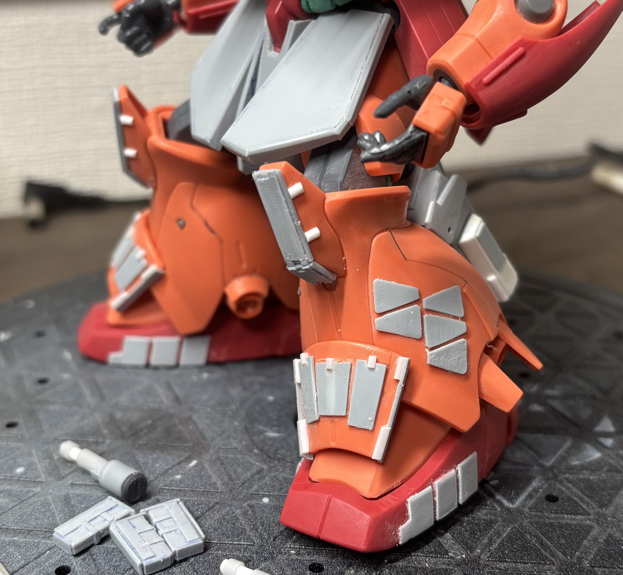 ますらお 2025.11/05更新 〇〇仕様 マラサイ 144 38 いいねしたモデラー(38) 8 作品を共有 膝下をディティールアップしますた。 珍しく曲面をマスキングテープでスジボリしたり、あまりやってなかった貫通させずにパーツ仕込んだり。なかなかええ感じになったかな。 制作中 コメント コメントをして応援しよう コメントにはログインが必要です バレーボールおじさん 2日前 アタシから質問なのですが、 肩の三角の追加アーマーって、どうやって切り出してるんですか? 直角三角形なら、四角を切り出して半分に切ればいいのですが、 その形って、どのような手順で切り出してるんだろう(zaku-kao8)? ぜひ教えて下さい(zaku-kao8) ますらお 2日前 a:四角を切り出してどういつサイズで揃える b:aの一枚を2辺を斜めにカットして雛形を作る c:bの雛形にaを一枚貼り付けて、カット d:cにaを貼り付けてカットを繰り返す e:最後に一枚づつ剥がしてヤスリがけ こんな感じです!(zaku-kao4) 基本切り出しは同じものは出てこない前提なので、凝ったカットをしたら必ず貼って揃えていってます! meg-ocero 2日前 ますらおさんらしさがどんどんと出てきましたね😁 ますらお 2日前 相変わらず弾はあたる前提です!(zaku-kao2) Ojipop 2日前 ついにスジボリですねー😄 更に機体の完成度が上がりますなー😁 ますらお 2日前 慣れてないとデザイン考えたスジボリが匠のようなものが出てきませんね(zaku-kao4)プラ板貼ってるほうがすぐ思いつくんですが cinnamon-1 3日前 順調にディテールアップされていますね👍 ますらお 3日前 ポリポリと思いついた手法を試してみてます(zaku-kao2)脚まわり全部終わらせていこうか悩み中です ますらお 未熟者ですがよろしくお願い申し上げます。 地球の重力に魂を縛られた中年。地上戦兵器を作り倒したい。 引き算のデザイン?…戦いはボリュームだよ兄貴ィ! 基本すぐ何かしらスクラッチをしないと気が済まない性分…基礎工作、塗装技術を鍛錬中。 ますらおさんがお薦めする作品 ガンタンク現地開発機(モノサロス) HGUC ドワッジ(HGUCドム改修) デザート・ザク キャノンカスタム 陸戦型ゲルググ(HGUC改修) 8 陸戦型ガルスJ 塗装が台風被ったせいか湿度でノリが悪く苦戦しまくりましたが、… 9 陸戦型ジム 市街地戦仕様 塗装機材トラブルなどで途中で機材変えたりで少し塗装がうまくい… 8 デザート・ザク キャノンカスタム ピンク・パンサー隊のデザート・ザクをベースにカスタム機体を作… 7 重装備型ザク・マリナー やっとこさ完成しました。プラモ活動復帰後初の水陸機作ってみま… ますらおさんのページ この作品をお薦め作品に設定する Please login to update your profile! Please login to update your profile! Please login to update your profile! Please login to update your profile!