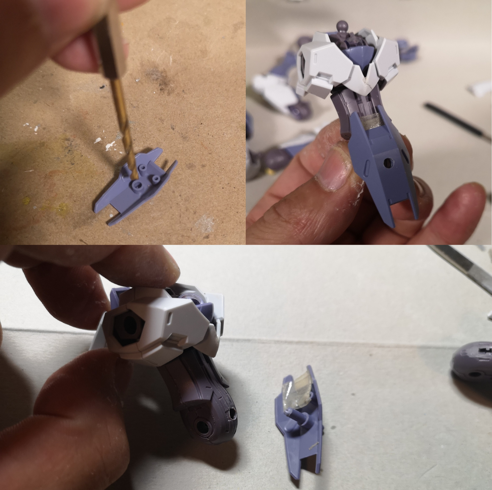 ・パーツに開いた穴からドリルを入れ、本体にも穴をあける