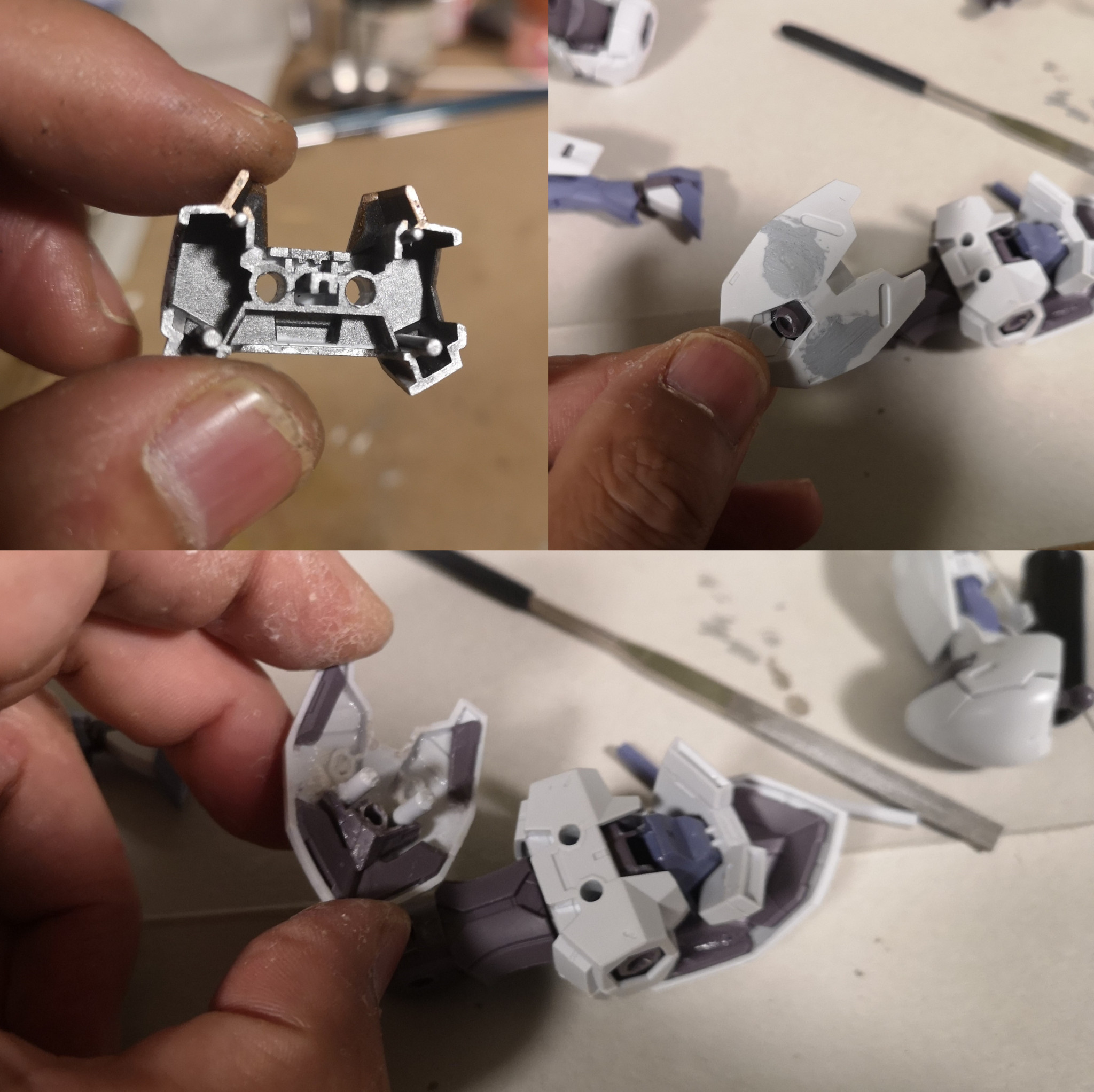フロントアーマーと同じ方式でも良かったのだけれど、近くにあったパーツ接合部を埋めるのにパテを使ったので一緒に作業