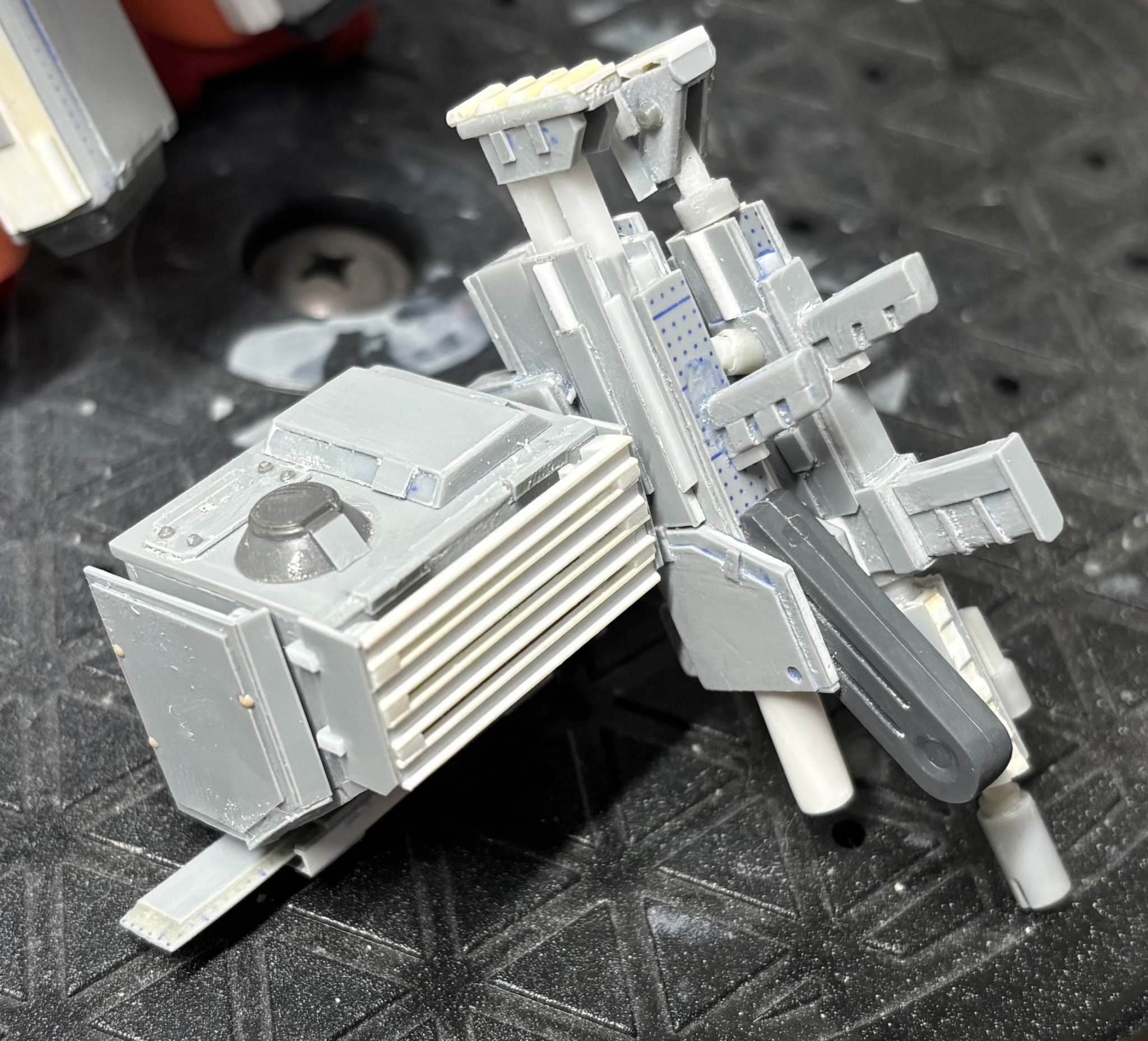 箱組は内部に補強と水平出しの1mmプラ棒入れてなんとか精密出してますが、切り出し時のブレが一番ズレるのでヤスリがけでなんとかそれっぽくしてます(zaku-kao4)真横から見た時に後ろに長いの好きなんですよね!