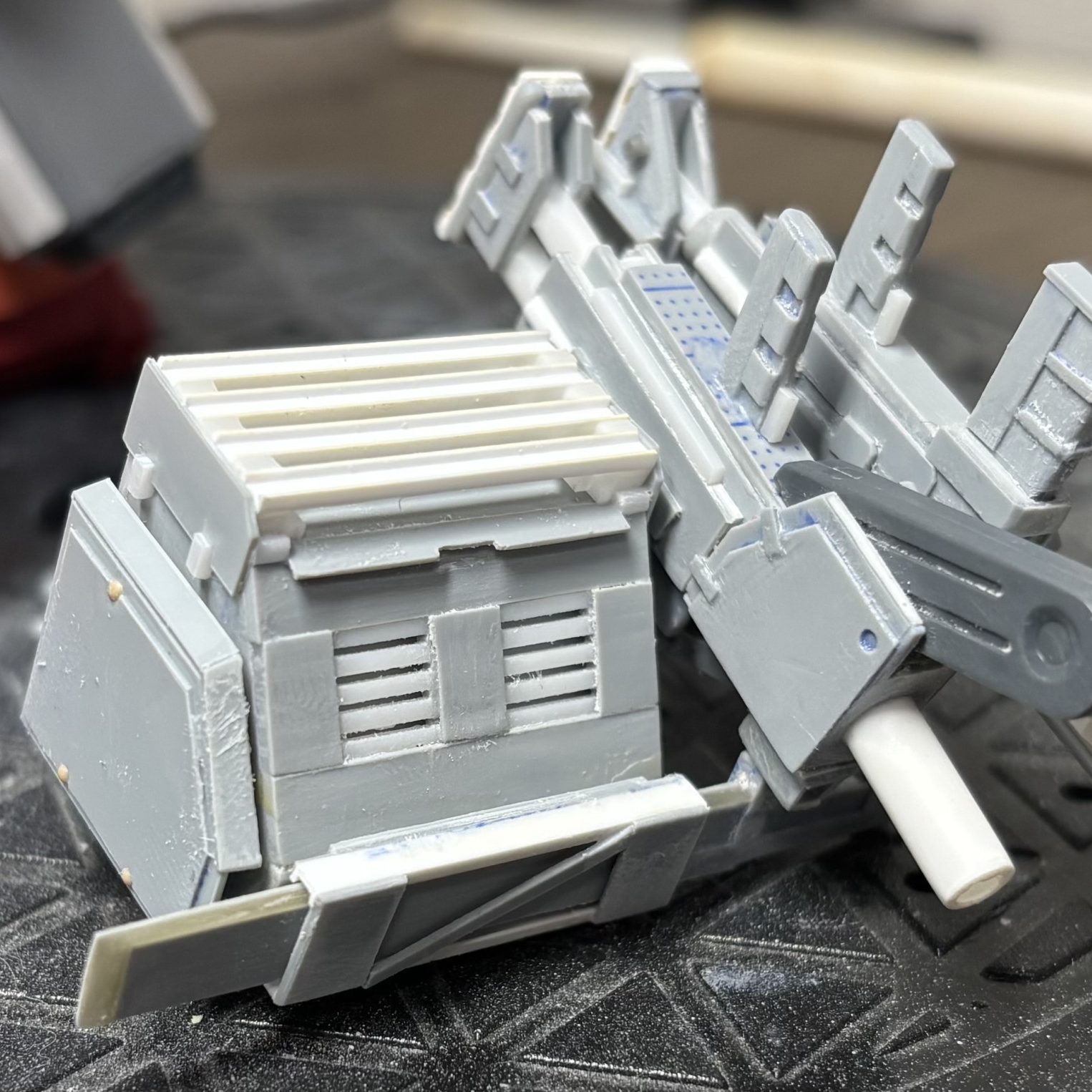 ありがとうございます(zaku-kao2)0.3,0.5,1.0mmのプラ板とエバグリ、ウェーブ、タミヤのマテリアルの混合ですね(zaku-kao5)単体作ってから基部に馴染むように追加で貼ってを繰り返してます