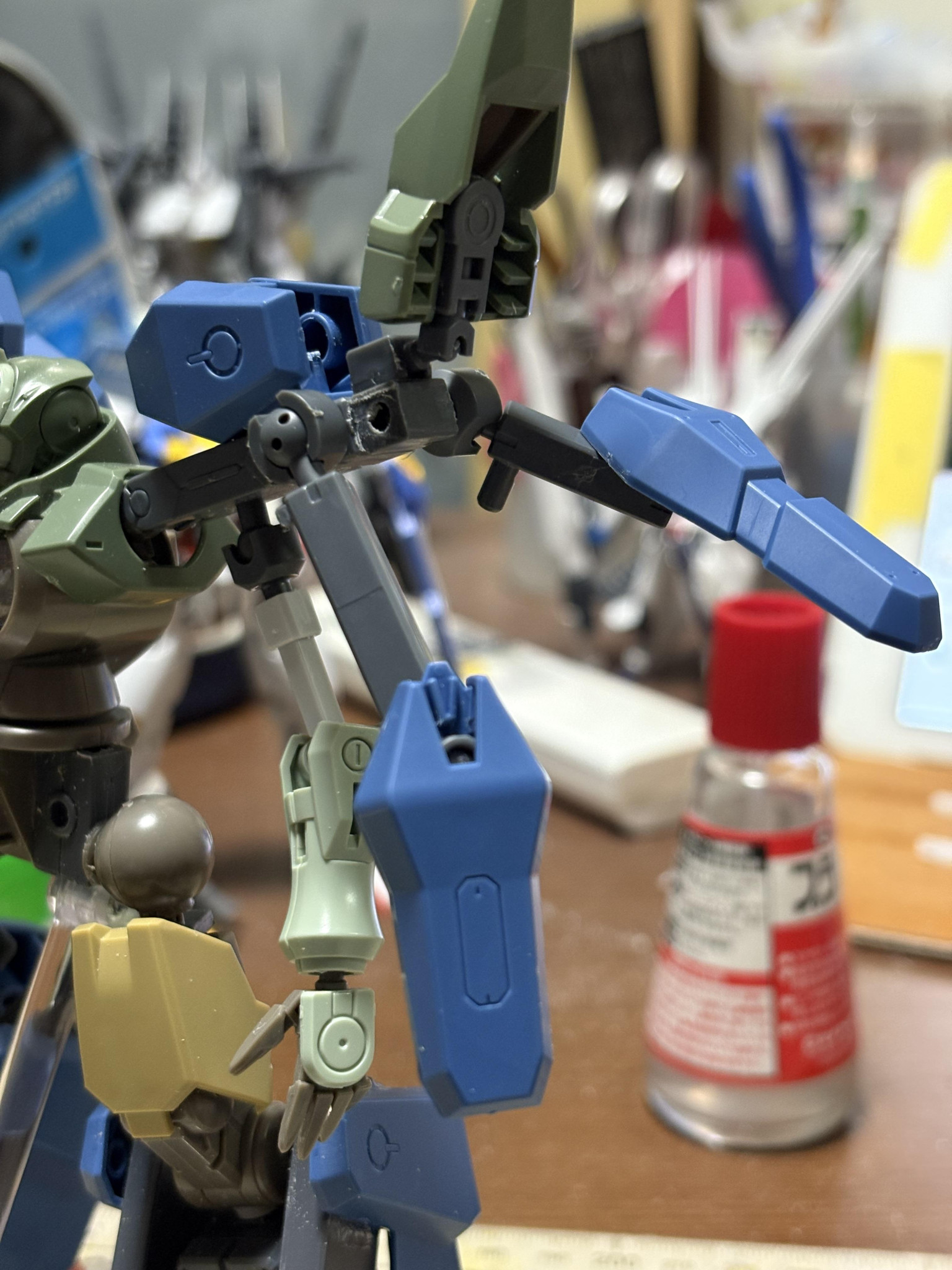 肩、腰等の特徴的なパーツをプラ板やパテなどで新規製作しました…