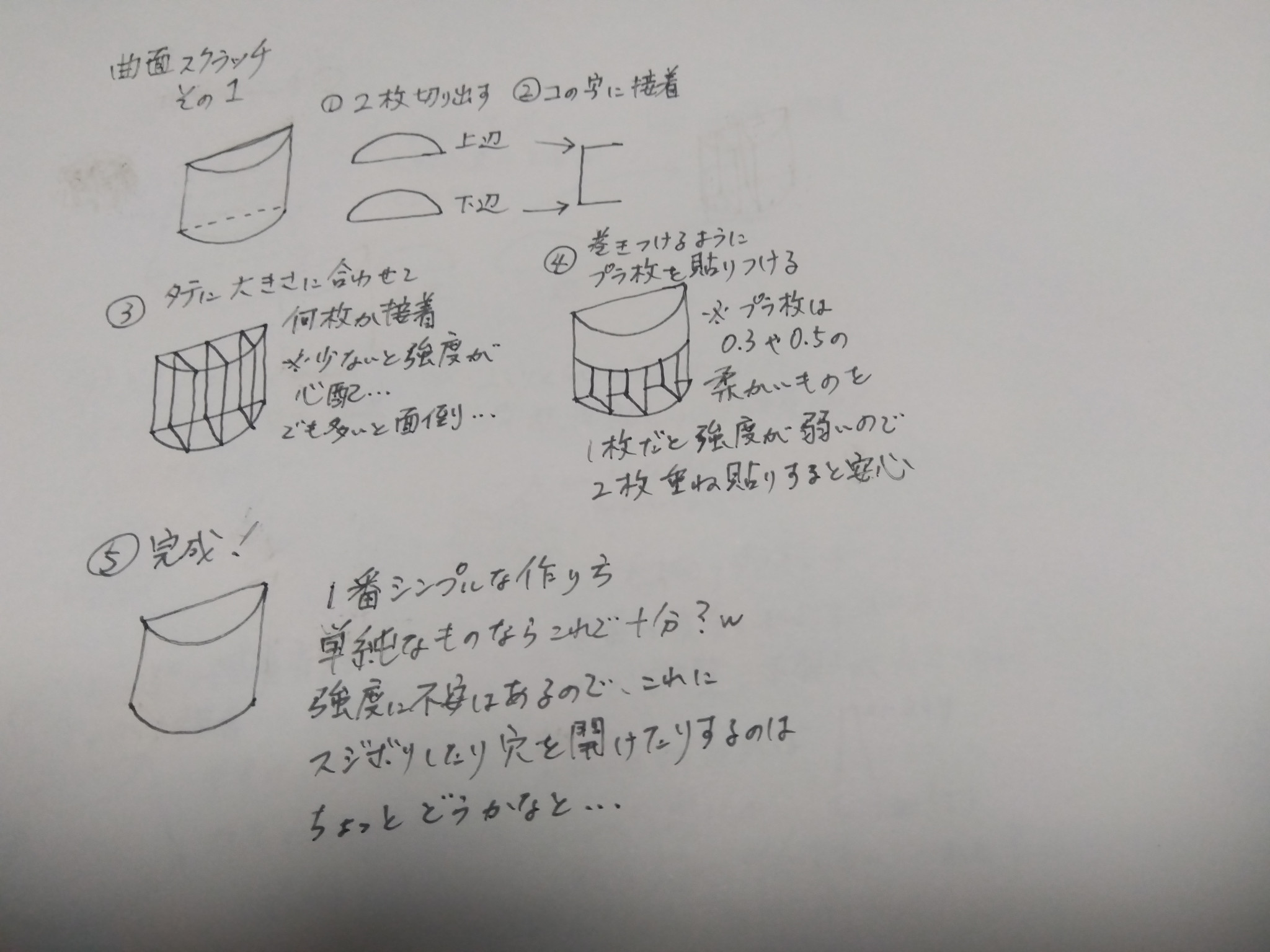 実際に作って見せるのはプラ板の消費が多くなってしまうので、拙い手書きでご勘弁を😅