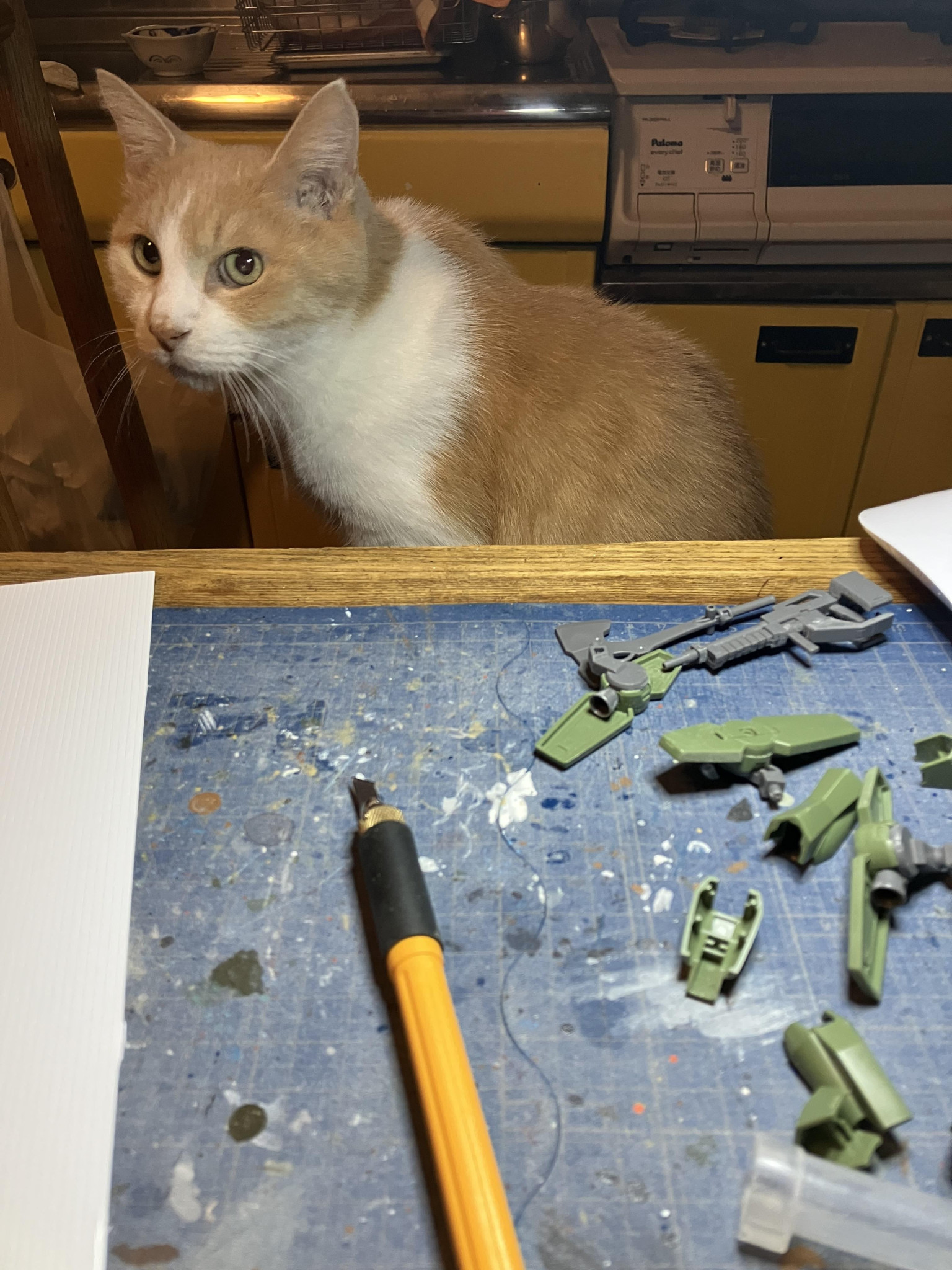 ニャンコが居るのでラッカー塗料、エアブラシを使わずvicカラーと水性アクリジョンの筆塗り、HGシリーズをコツコツと制作していきます。