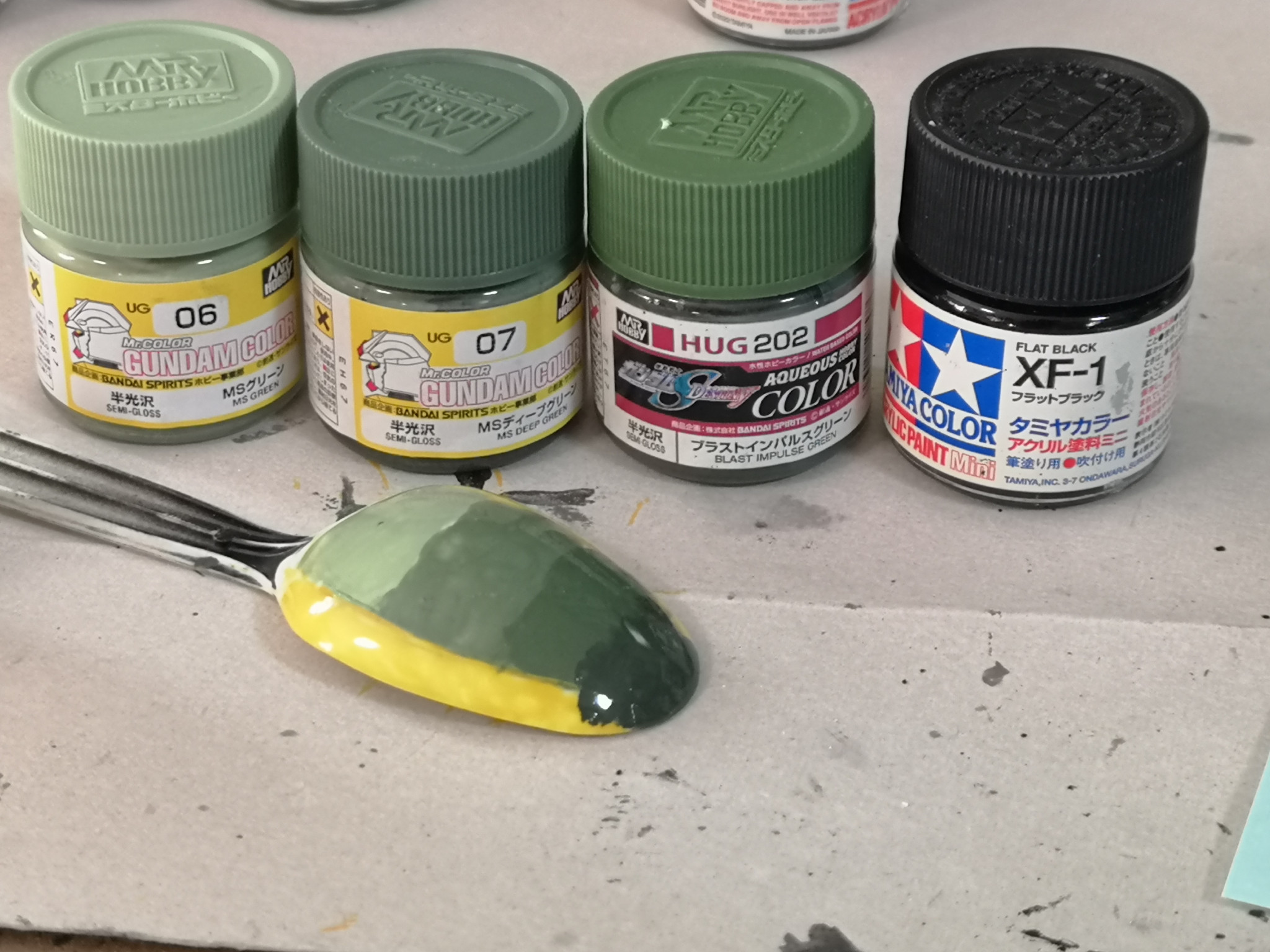 最後に参考程度に手持ちのガンダムカラーのグリーン系(ラッカーと水性が混じっておりますが)