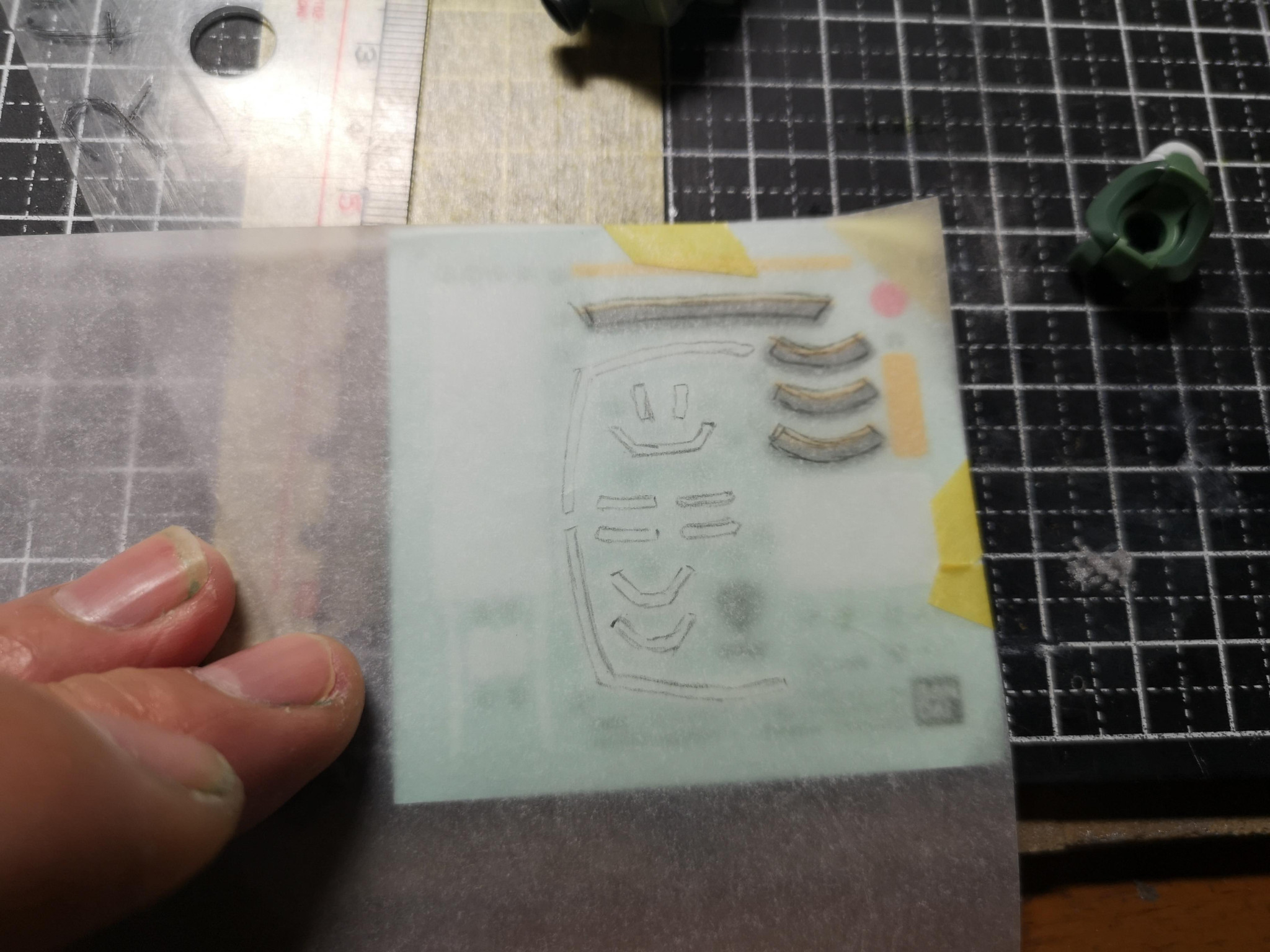 肩と腕の黄色いラインは一段下がっているので、最後あとから塗って、はみ出した部分をふき取るか、2段階にマスキングすればどうにかなりそうです。