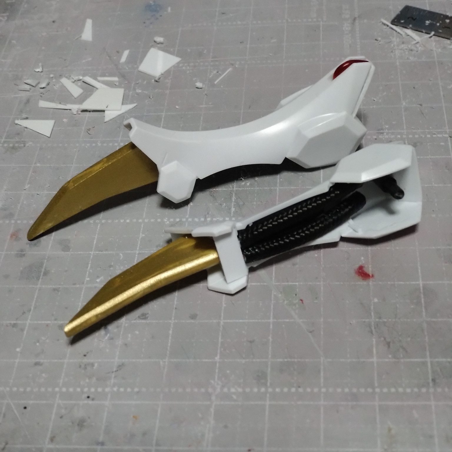 ape100 2025.11/18更新 64 24 いいねしたモデラー(24) 0 作品を共有 制作したクローをゴールドに塗装して裏側にはスマホケーブル切断したものを瞬間接着剤で付けてみました。 取り付け用のランナー軸も接着してます。 テイルブレードの様な物も簡単ですが制作してみました。 サッパリし過ぎかもなのでバランス崩さない程度に何かディティールっぽいものを追加するかもです。 制作中 コメント コメントをして応援しよう コメントにはログインが必要です ape100 子供のころからガンプラ好きです。 難しいことはできないので自己満足で楽しんでます。 ファーストガンダム好きですが最近の作品も映像が素晴らしくて好きです。 美プラ沼にも浸かっております。 変な作品もありますが私の作品気に入ったら気軽にコメント、フォローお願いします。 沢山の素晴らしい作品を見て自分の技術のレベルアップをしたいです。 よろしくお願いします。🙇 ape100さんがお薦めする作品 歴戦グフカスタム寒冷地仕様 ガトリングガンランス装備 セイラ & Gファイター YMS-15 GYAN ボックスアート風塗装 パーフェクト・ララァ・スン 16 アニメ「ダンダダン」綾瀬モモちゃん メイドver チナッガイを改造してアニメ「ダンダダン」の綾瀬さんのバイト姿… 6 〜バトンをつなぐ〜 託されましたバトン、さてどうしたものか? 私に何が出来るだろ… 14 RG MSN-04 SAZABI RG サザビー完成しました。 GUNSTA始めた頃に欲しくて… 3 チョコサプ ゴッグ 黒い三連星カラー サザビー制作の合間に塗装してみました。 普通カラーは皆さんや… ape100さんのページ この作品をお薦め作品に設定する Please login to update your profile! Please login to update your profile! Please login to update your profile! Please login to update your profile!