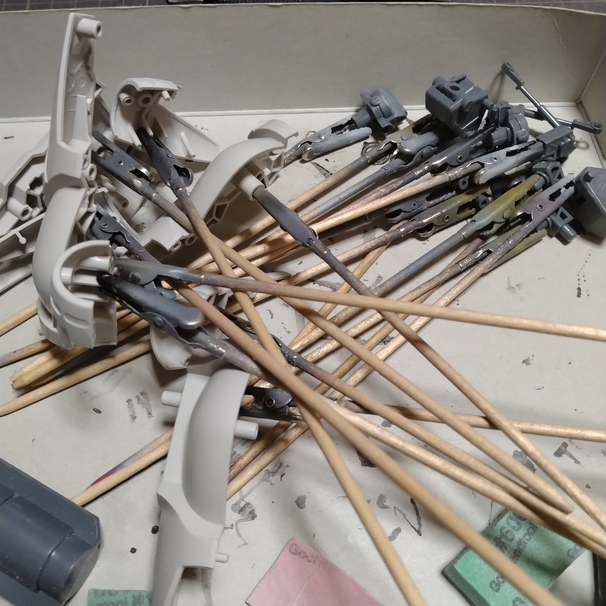 かなり待ってましたが、結局は夕方に溶剤が来ました!😅なんで待ってる時に限って来るの遅いんですかね?😄で、まとめて塗装やって行きたいところですが、バインダー内部のパーツの合わせ目処理も終わってるので一旦はバインダーの合わせ目関連のみやって行こうと思います!😄と、言うのもスジ彫りを入れようと思ってるので他のパーツはまだ塗装すべきでは無いと思うからです!😄昨日ちょっと外で歩行の練習を頑張りすぎて今日はめっちゃ疲れてほとんど横になってまして😄😄調子が戻ったらこのバインダーの作業に入ろうと思います!😀取り分けストーリーをアップし始めているので経過は上げないとダメだなと思いありのままの状況をアップです!😄
