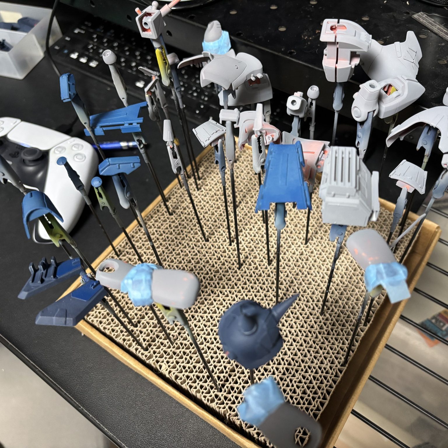 ますらお 2025.11/22更新 基本塗装「重力圏海兵隊仕様 マラサイ」制作中 0 12 いいねしたモデラー(12) 3 作品を共有 基本塗装中、マスキングすれば剥げて泣きながら補修。塗装ほんま下手というか、サーフェイサーもう少し試そうかな…。白サフとか使わないと鮮やかな黄色でないしまぁ霞んでるの好きなんですが(zaku-kao4)下処理が十分じゃないからサーフェイサー剥げるのか…試行錯誤をもっとしないと 飯テロ 先日スーパーでいい感じのモツが売ってたので、食す前日に下処理と出汁取ってもつ鍋したんですが、安くて美味しい。やっぱりスリゴマがぱっと遠慮なく放り込めたり、味変も自由自在の自宅は最強ですな。 制作中 コメント コメントをして応援しよう コメントにはログインが必要です さーしースー 16分前 お店のもつ鍋みたい😍 ガンプラを入れるといい出汁が出る… (`・д・)っ))ナンデヤネンッ SC30 3時間前 モツも塗装も下処理が大事ですかね😁。 ますらお 2時間前 美味いこといって!(zaku-kao2)山田くんSCさんにドダイ一枚! ますらお 未熟者ですがよろしくお願い申し上げます。 地球の重力に魂を縛られた中年。地上戦兵器を作り倒したい。 引き算のデザイン?…戦いはボリュームだよ兄貴ィ! 基本すぐ何かしらスクラッチをしないと気が済まない性分…基礎工作、塗装技術を鍛錬中。 ますらおさんがお薦めする作品 ガンタンク現地開発機(モノサロス) HGUC ドワッジ(HGUCドム改修) デザート・ザク キャノンカスタム 陸戦型ゲルググ(HGUC改修) 8 陸戦型ガルスJ 塗装が台風被ったせいか湿度でノリが悪く苦戦しまくりましたが、… 9 陸戦型ジム 市街地戦仕様 塗装機材トラブルなどで途中で機材変えたりで少し塗装がうまくい… 8 デザート・ザク キャノンカスタム ピンク・パンサー隊のデザート・ザクをベースにカスタム機体を作… 7 重装備型ザク・マリナー やっとこさ完成しました。プラモ活動復帰後初の水陸機作ってみま… ますらおさんのページ この作品をお薦め作品に設定する Please login to update your profile! Please login to update your profile! Please login to update your profile! Please login to update your profile!