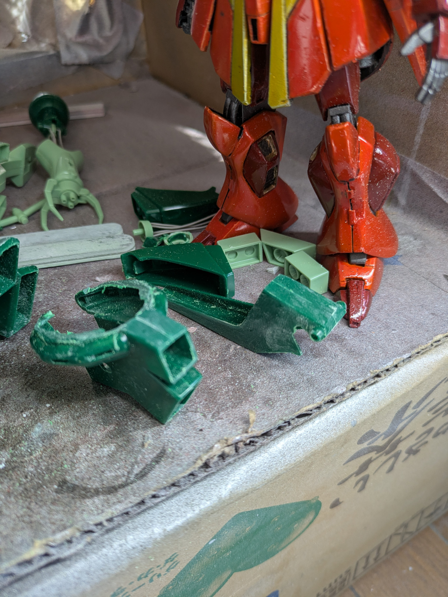 ヒロ@zz3471… 2025.11/23更新 旧キットハンマハンマ「旧キット ハンマハンマ」制作中 24 4 いいねしたモデラー(4) 0 作品を共有 なかなか時間が取れず、今はまだこんな感じです。 胴体は各パーツに分割して幅詰め、肩は2ミリ足してパテでライン慣らし、コクピットハッチを自作してくちばしみたいなカバーを可動させるかの検討中となります。 まだまだ先は長そうなので、気長にお待ち下さい。 制作中 コメント コメントをして応援しよう コメントにはログインが必要です ヒロ@zz3471008027 50代です。 ヒロという名でエックスに投稿しています。 関節改造や完全変形への改造がメインで、デカールはあまり貼りません。 投稿基準は、改造したか、塗装したかで、素組みだけのはしない予定です。 17 旧キットRジャジャ お待たせしました。 旧キットRジャジャが完成したので投稿しま… 12 HGUC FAZZ お久しぶりです。 Sガンダムの投稿からしばらく経ってしまいま… 17 HGUC Gクルーザー Gクルーザーを投稿します。 これでSガンダムの投稿は最後にな… 13 HGUC Ex-sガンダム Ex-sガンダムを投稿します。 ヒロ@zz3471…さんのページ この作品をお薦め作品に設定する Please login to update your profile! Please login to update your profile! Please login to update your profile! Please login to update your profile!