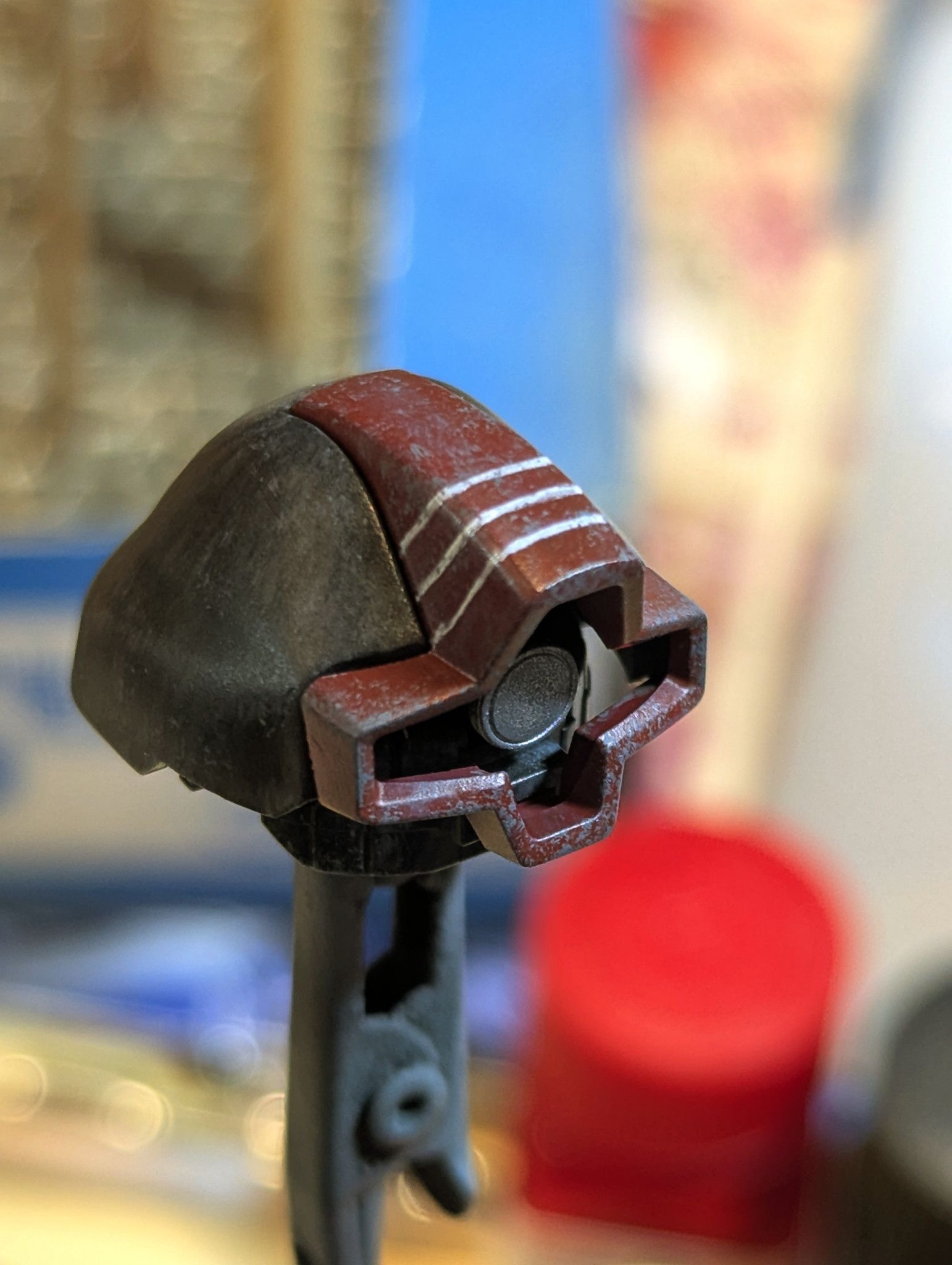 誠一さんやtomさんみたいに創作に挑もうとナイフとT字定規を持ち意気込みましたが、、、よくよく見るとまず顔の造形から全く違う💦普通のザクⅡより扁平でなんだか頬骨も出てる、、、何°で行けばいいの❗️など即パニックに💫笑