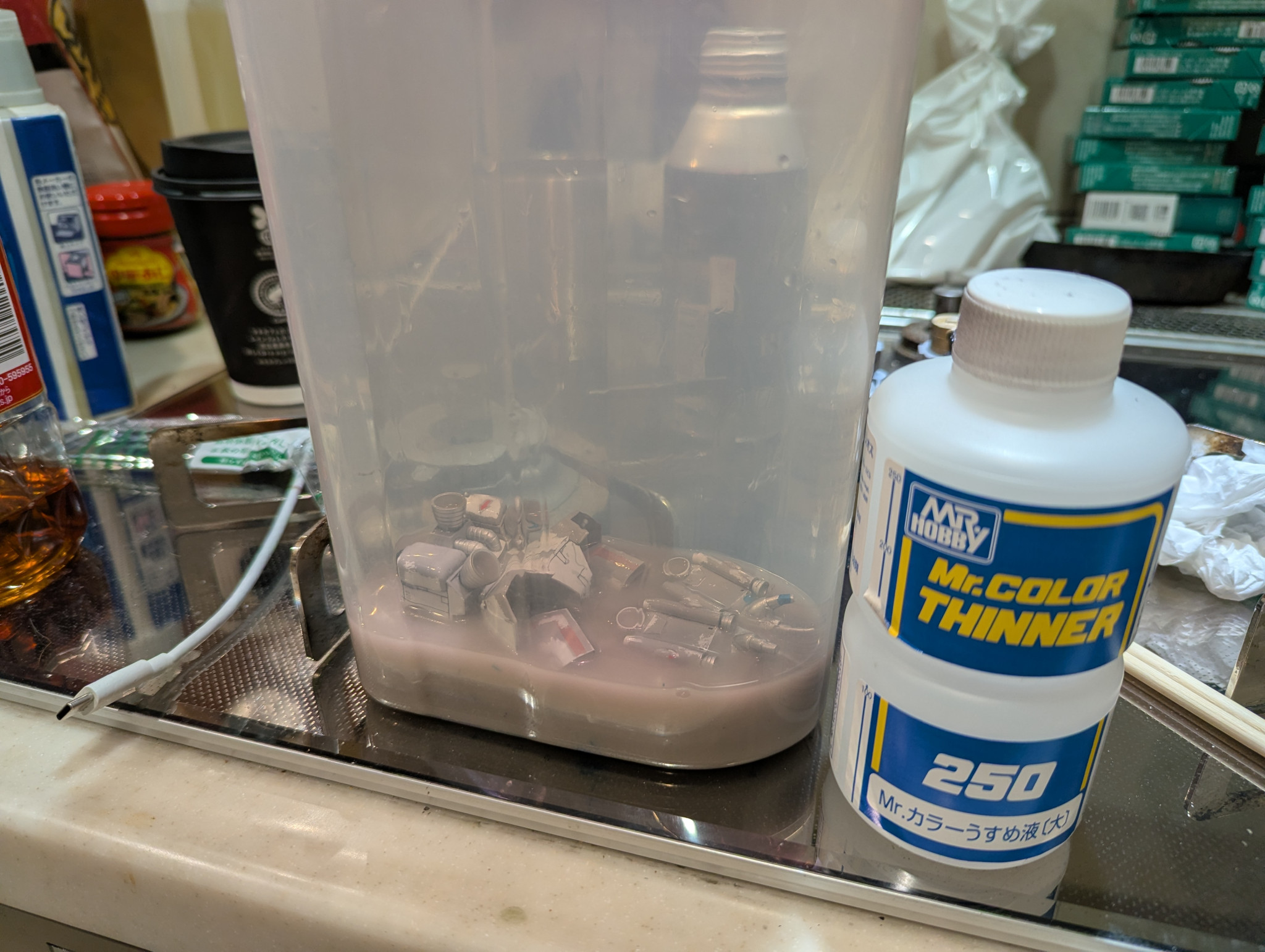 入荷を待つ間、全機体中トップクラスに好きなタコザクさんの昔の塗料を脱色しております😸