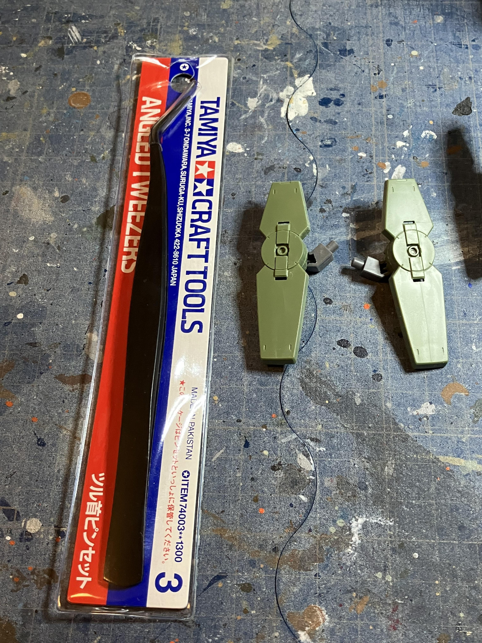 自分のピンセットは先の尖ったタイプで細かなパーツも掴みやすくて重宝しております。