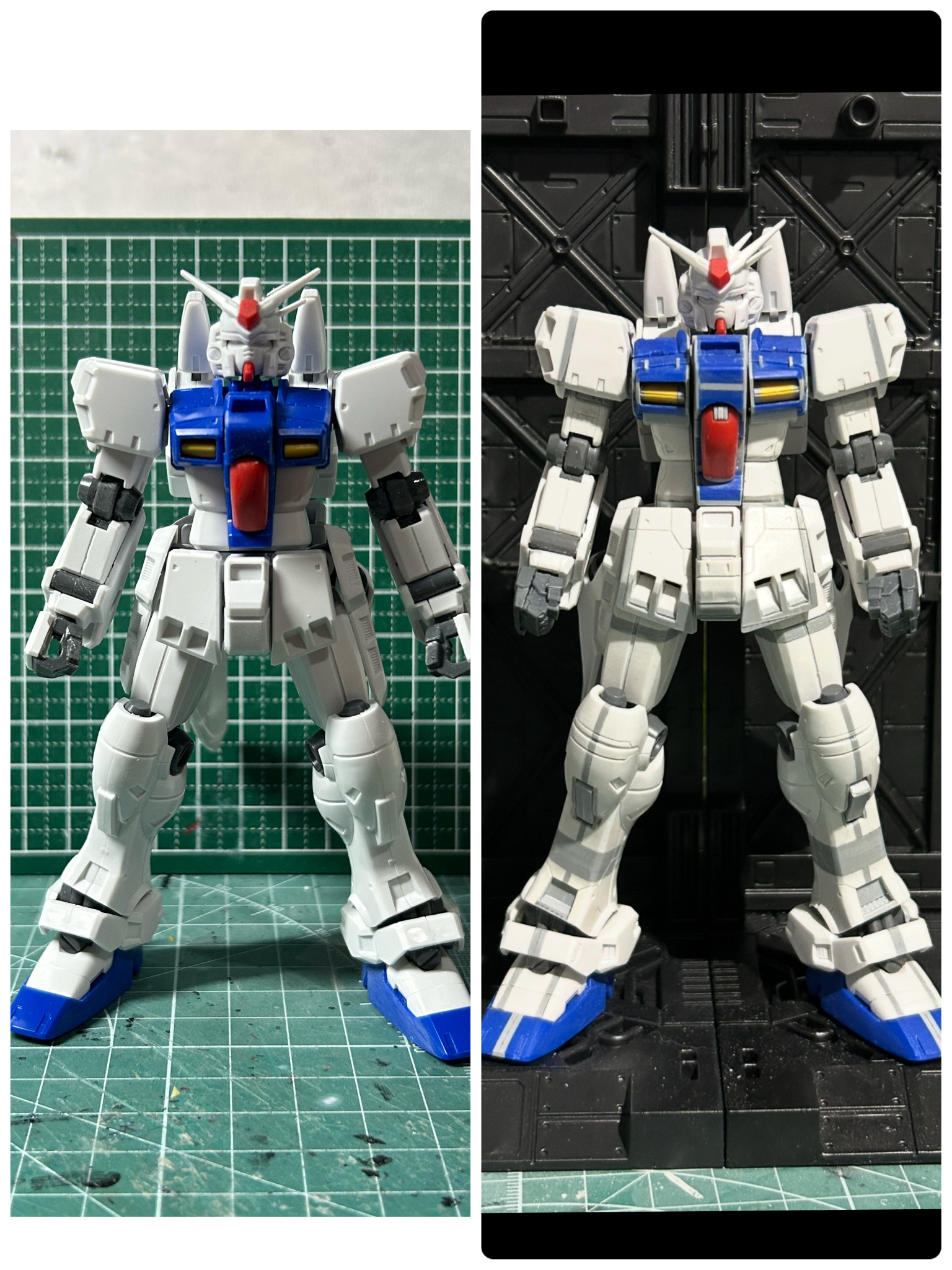 ![meg-oceroさんからバトンを託されたので今回担当させて頂きます😆と言っても、もう他の素晴らしいモデラーさん達が数々の秘伝の奥義を紹介しておりますし、プラモ歴の浅い私目が紹介するようなビックリ必殺技も無いのも事実ではありますが、meg-oceroさんからもプロポーション弄りに関してはどうかとコメントでのご意見を頂いたので、自分なりのプロポーション弄りをご紹介させていただきます😆急な事で説明材料があまり無いので直近に完成させたステイメンを活用しますね😊・プランニング先ずパチ組の状態のステイメン、バランス的になんだか子供体型に見えますよね、で、具体的にどこをどう直したら大人体型になって格好良くなるか考えます。それこそ設定画や雑誌のカッコイイ作例と見比べたりなんかするのも良いです。で、個人的に思ったのが…胴体が小さい(顔がデカく見える)、上腕が短い、設定画に比べて脚(特に脛)が圧倒的に短い&太さが足りない…という感じでした。以上の点を改修するぞとプランをたてます。・作業改善箇所を頭に入れたらノコギリでぶった斬ります!思い切ってCUTしちゃいます!所詮プラの塊だから後でどうにでも修正出来る!俺はスプラッター映画のサイコ野郎だぜ!ヒャッハー!!というマインドで切り刻みます。私は模型用のノコギリ、精密ノコギリなどを使用します、用途に応じて使い分けてます。古いキットなら表面の側だけで済んだりしますが、最近のは内側に骨組みもありますからそういう場合両方延長しますのでCUTする箇所はよく考える必要があります✋・プラ板接着よる延長お次はプラ板を挟んで接着し任意の長さにして下さい。この匙加減はその人の好みが出る箇所だと思いますが、自分は長めに設定します。長過ぎたらまたカットして詰めればいいんです😆・チェックここで一旦全体のバランスを見直します、自分の中では最高のバランスに仕上げたつもりでも意外にもアレレ?おかしいぞ??となったりします、その違和感をしっかりじっくりと確実に突き止めます。それはフロントアーマーが小さく感じるのか、脚が長過ぎた…、腰が短い!?首も長くしてみよう、2mm?いや1mmか…様々な要因を突き詰めて修正して下さい、そこで気付きます…「やらなきゃ良かった…」 そんな時はちょっと日にちをあけてフレッシュな気持ちで改めて見つめ直してみて下さい、そして悩んで悩み抜いて正解を導きだせば自分だけの黄金比に辿り着けるはずです😆👍 ・ヤスリがけそこは大胆に!そして慎重に!!ヤスって整えればいいじゃない!!なんですが…、ここまでの作業で特に大事なのは何か…それは「接着剤の選び方」です!瞬間接着剤は時短でヒケも出来にくい反面、延長箇所を跨いだスジ彫りなんかは非常に難しいです。プラ板と瞬着の硬さが違うのでどうしても瞬着の箇所でタガネが引っかかったりしてプラ板と同じように彫るのが難しいのです😓あとヤスリがけも硬いからちょっと面倒です。一方で普通のプラ用接着剤は溶かして接着するので、そう言ったスジ彫りなんかでの相性は良い反面、しっかり時間をかけて乾燥させないとヒケが出てしまいます。まぁ基本というか当たり前の事ですが、接着して1〜2日程度でヤスって製面すると確実にヒケがでます。せっかちな私はよくやらかします。笑といった感じで接着剤もその後の作業に合わせて選んでいった方が効率が良いですね😆そして最後は…・サフチェックどんなに綺麗にやったつもりでも確実に傷や埋まってない小さい見落とした穴なんかがあります、この作業は絶対必要です!そして1番面倒です😂ヤスリがけとサフを何度か繰り返してようやく辿り着いた完成系…それはもう完全に…アナタだけのオリジナル!! 一度味わったら抜け出せない境地がそこにある!まだ延長工作した事ないんだぜってアナタ、一度挑戦してみてはいかがでしょうか??🤟🥰 以上となります、自分なりのやり方を楽しく真剣に解説させていただきました、ご覧頂きありがとうございました!第二バトンリレーは[バレーボールおじさんさん]→[ますらおさん]→[meg-oceroさん]→私目[@244]と繋いでます。次誰かにお願いしちゃうんだからね!!ってうちの猫ちゃんが言ってます!😼(2枚目)](https://gumpla.jp/wp-content/uploads/2025/11/IMG_1220-600x600.jpeg)