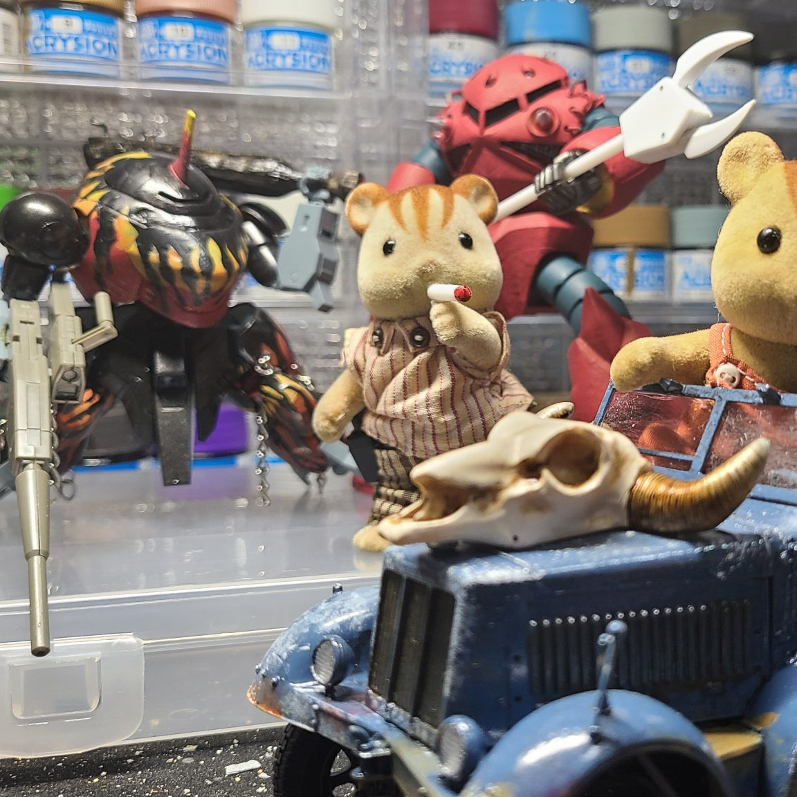 アベラギ 2025.11/25更新 やりたい事全部入り! 8 13 いいねしたモデラー(13) 3 作品を共有 アベラギ愚連隊ジオラマのベースがちょこちょこ揃ってきた! 僕の考えた最強の賞金稼ぎ部隊みたいな小学生ですら考えないような事をやろうとしてます! シルバニアが入る時点でスケール合わせなんて出来ないのでそこは早々に諦めました笑 頭の中がコロコロコミックです! ちょっとアレな人なんだなぁと思って生暖かく見守ってください…… 制作中 コメント コメントをして応援しよう コメントにはログインが必要です 猩々(しょうじょう) 2時間前 いいなぁ😆 牛の頭蓋骨がたまりません。 どこから探してきてるのでしょうか‼️ cinnamon-1 7時間前 各々の世界観がありますよね😁 楽しんでいる様子が伝わります👍 アベラギ 7時間前 コメありがとうございます! 引き算の美学を忘れ足し算だけしています笑 アベラギ 素組みにちょこっと毛が生えたくらいの制作をするモデラーです! 買えるキットも限られる時代ですので一期一会で適当に売ってる中で作りたいと思ったものを作っています! ピッカピカよりもボロボロサビサビに魅力を感じます! アドバイスじゃんじゃんくだせぇ! アベラギさんがお薦めする作品 ジオラマ『堂々たる投降』 ユニコーングフカスタム 4 〜バトンを繋ぐ〜 と思いましたが私の技術って小手先で楽に安くやる事ばかり考えて… 3 EX-SD【MSN-04 SAZABY】 初の電飾にチャレンジしてみました(zaku-kao2) 今回… 3 チョコサプ水泳部 チョコサプ1日1個ゆるーくチープな筆塗り! ゴッグは台座もち… 2 アーティファクトと同時制作天パ機 BBのνとexstのガンダムです! 一応全塗装ですが特に言及… アベラギさんのページ この作品をお薦め作品に設定する Please login to update your profile! Please login to update your profile! Please login to update your profile! Please login to update your profile!