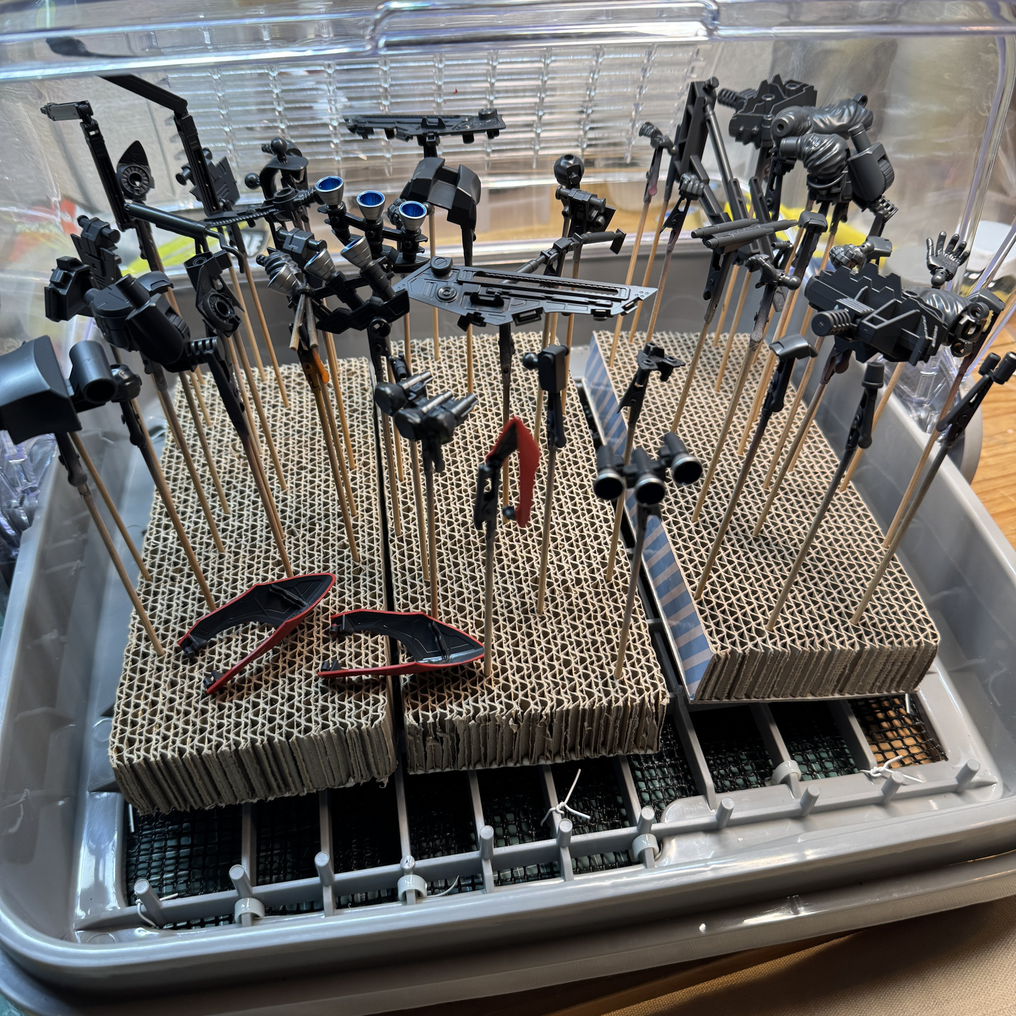 Mosu 2025.11/27更新 進捗 8 7 いいねしたモデラー(7) 0 作品を共有 ちまちま塗装進め中です。Switchでメダロット過去作集が安くなってたのでちょっと浮気してしまいました。倍速機能は助かりますますね、まともに1本ずつやる時間取れないので(zaku-kao9) 制作中 コメント コメントをして応援しよう コメントにはログインが必要です Mosu だいたい年に1作のペースで制作。 300年くらい生きたら上手くなれる気がする。 息子と一緒に作れるようになるのが楽しみ。 でしたがポケモンとマイクラに全部もっていかれました。 いやポケカ普通に面白いんですが笑 家事育児でほぼ占拠された中、制作だけじゃなく何かやりたいな〜と漫然と画策中。 Mosuさんがお薦めする作品 ARZ-125 REHAIZE〈リハイゼ ティターンズ鹵獲仕… ARZ-125 RE-HAIZE【んどぱら屋さんガレージキッ… HAZE’N-THREY II RAH <MS形態> +拡張… Hi-ν GUNDAM +ハイパー・メガ・バズーカ・ランチャ… 6 ORX-013 ガンダムMk-V 【オリジナルカラー】 今回は【悪役】をテーマに色選びとポージングにこだわりました。… 6 MG サザビー Ver.ka 何を思ったのか白く塗りたくなったサザビー。 なんか制作した物… 6 MG ヘイズル・ラー 第二形態 作り溜め作品です。 MGヘイズル改+フルドド2機で、ヘイズル… 5 GP04 ガーベラ RE 1/100 GP04 ガーベラです。 撮影機材引っ張り… Mosuさんのページ この作品をお薦め作品に設定する Please login to update your profile! Please login to update your profile! Please login to update your profile! Please login to update your profile!