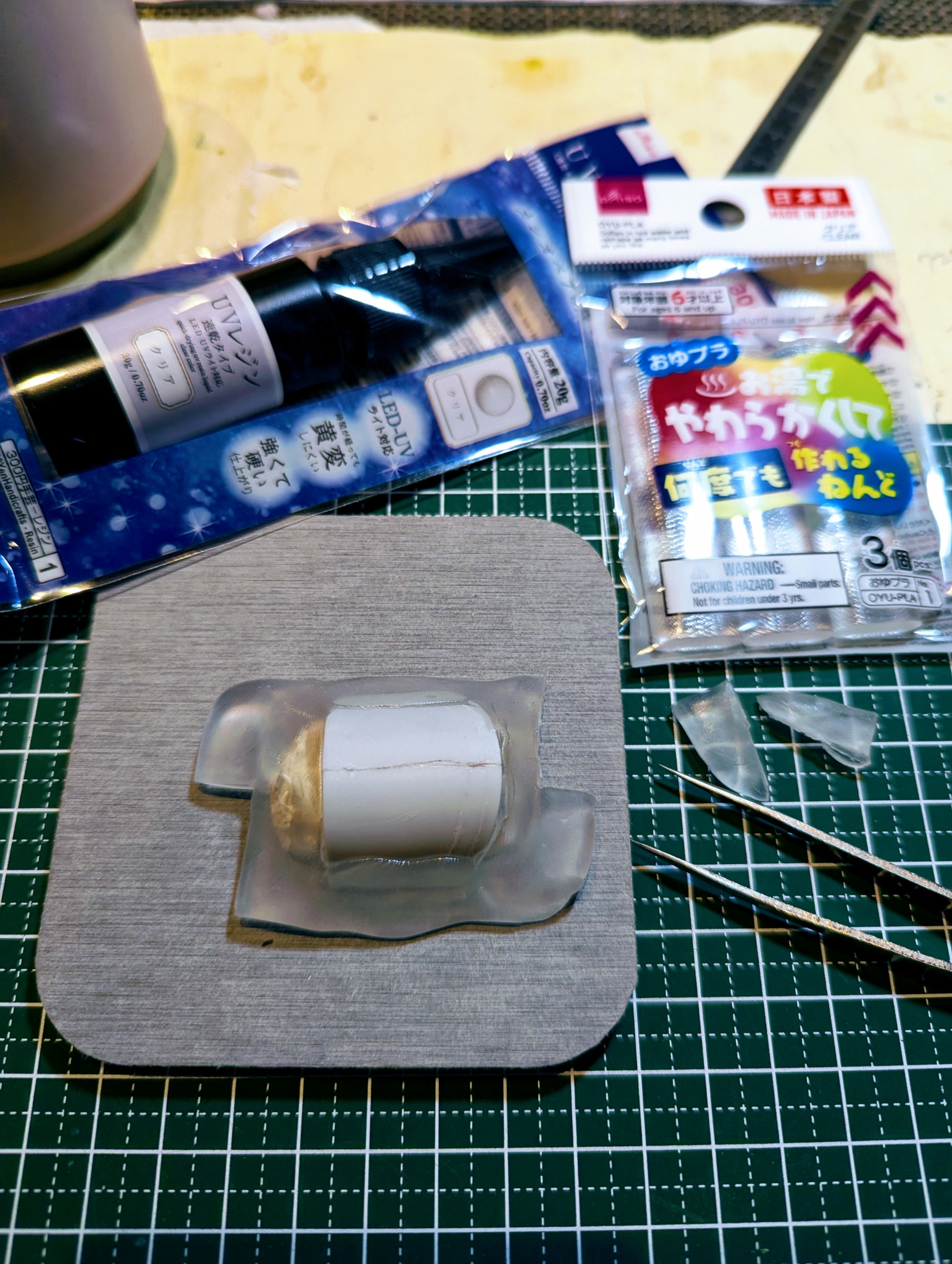 空母赤城の丸窓作成用にレジンとブルーライトは買っておいたのですが上手く行かずホコリかぶってました😅笑