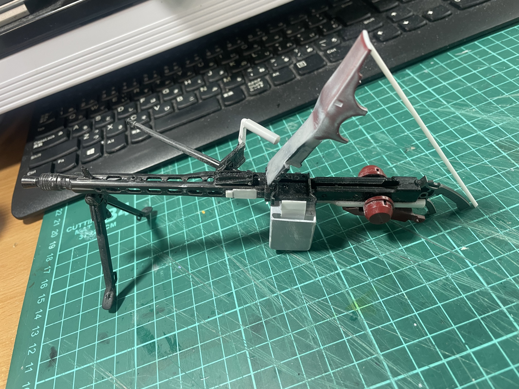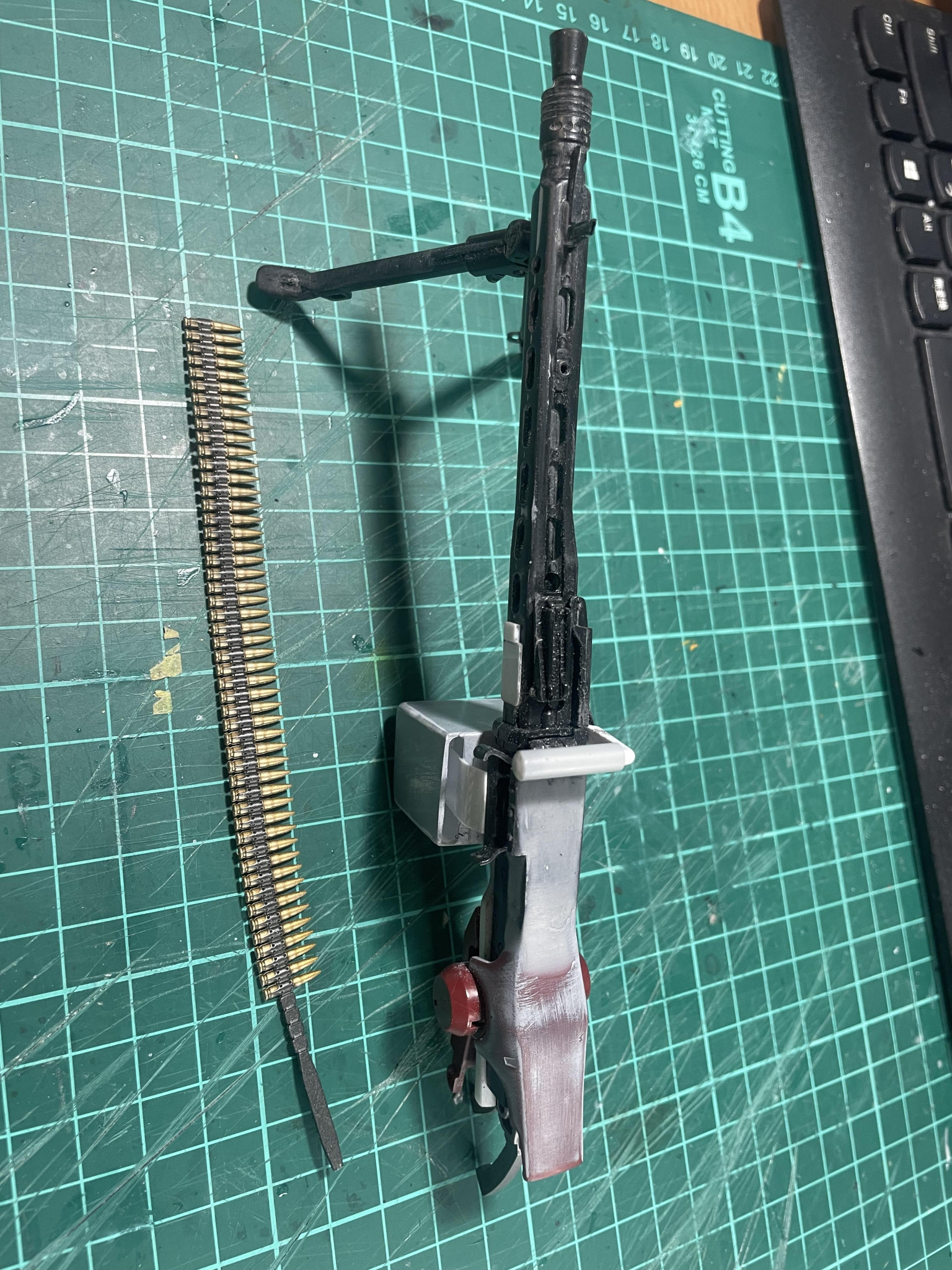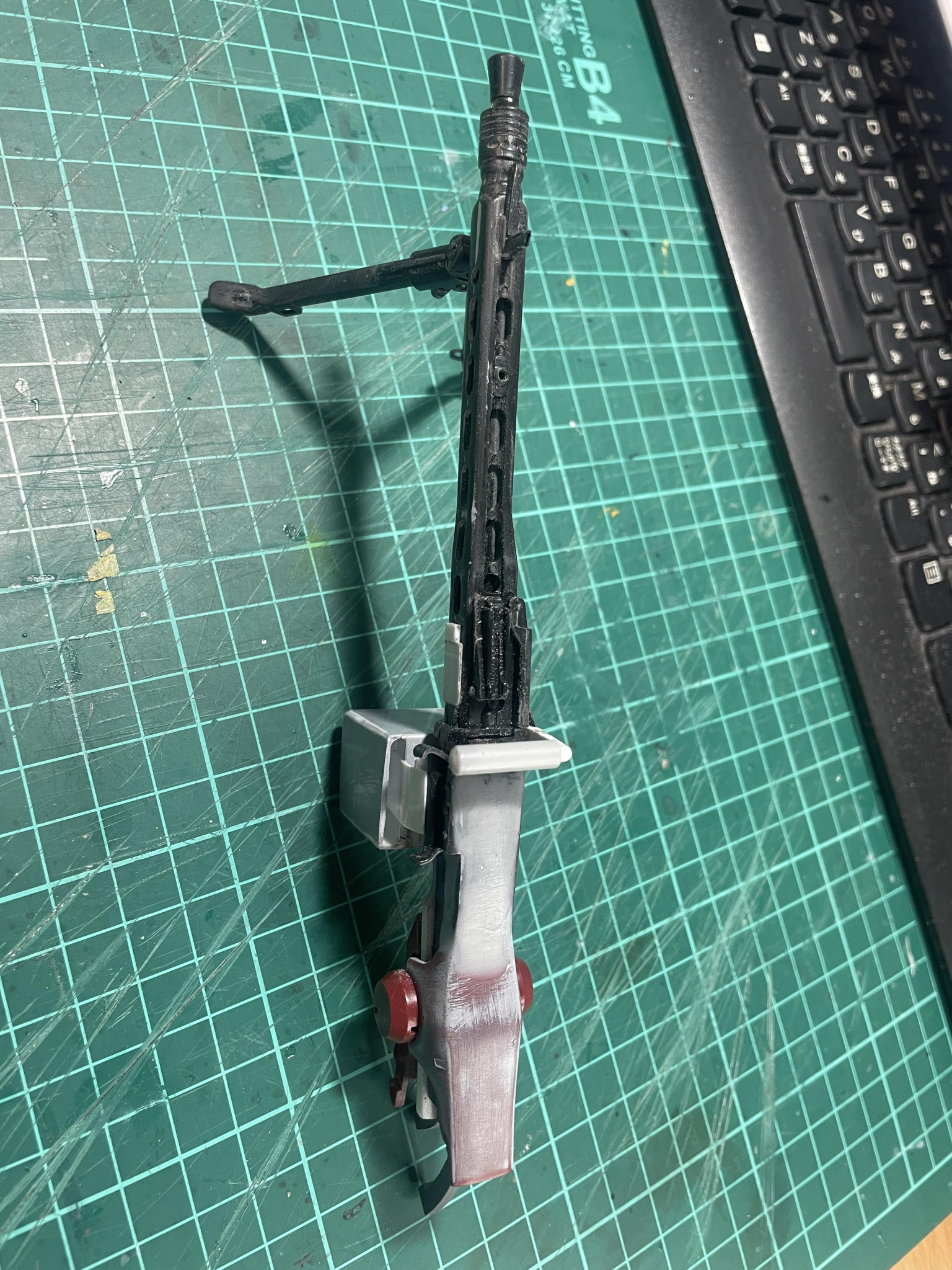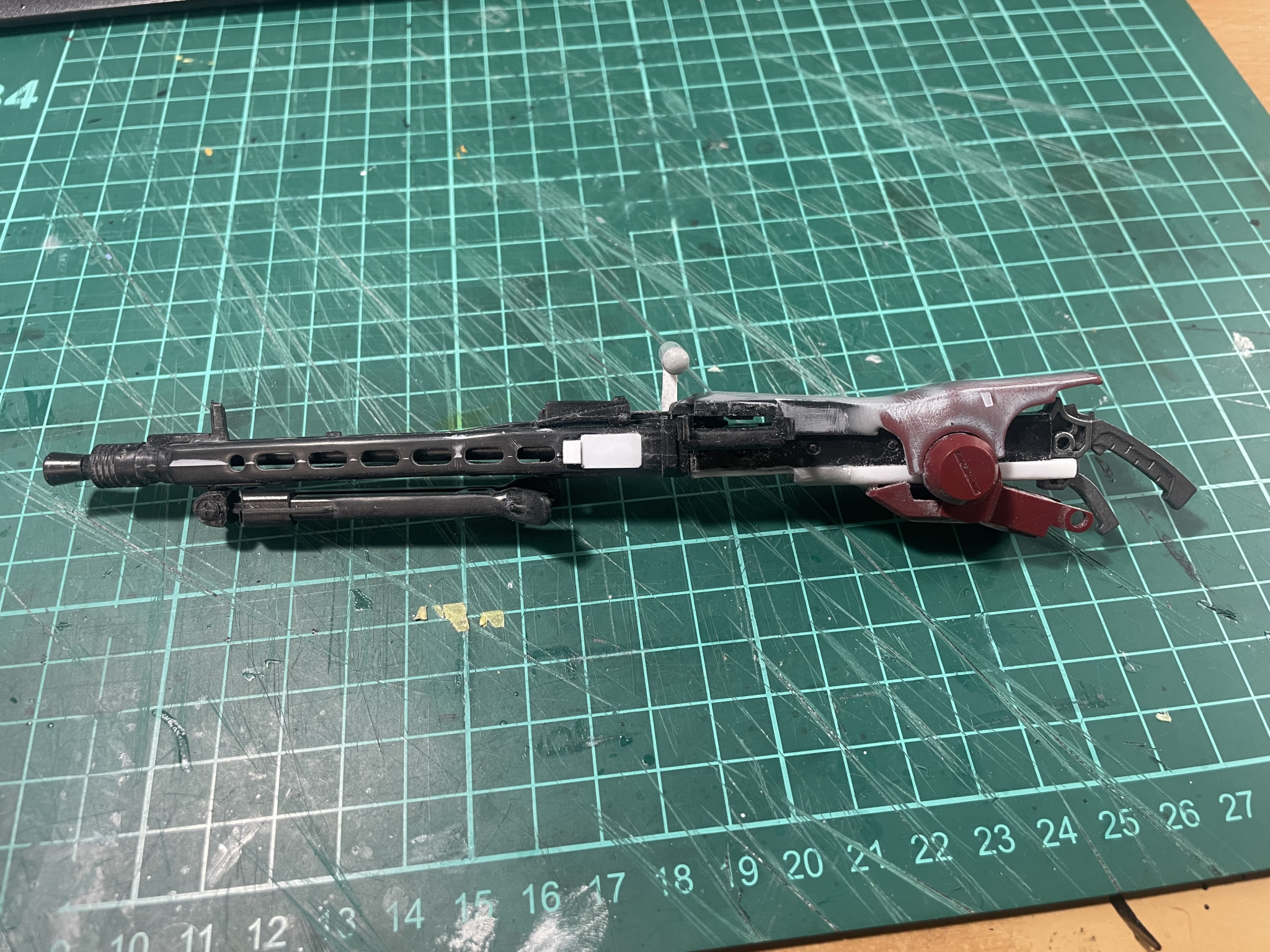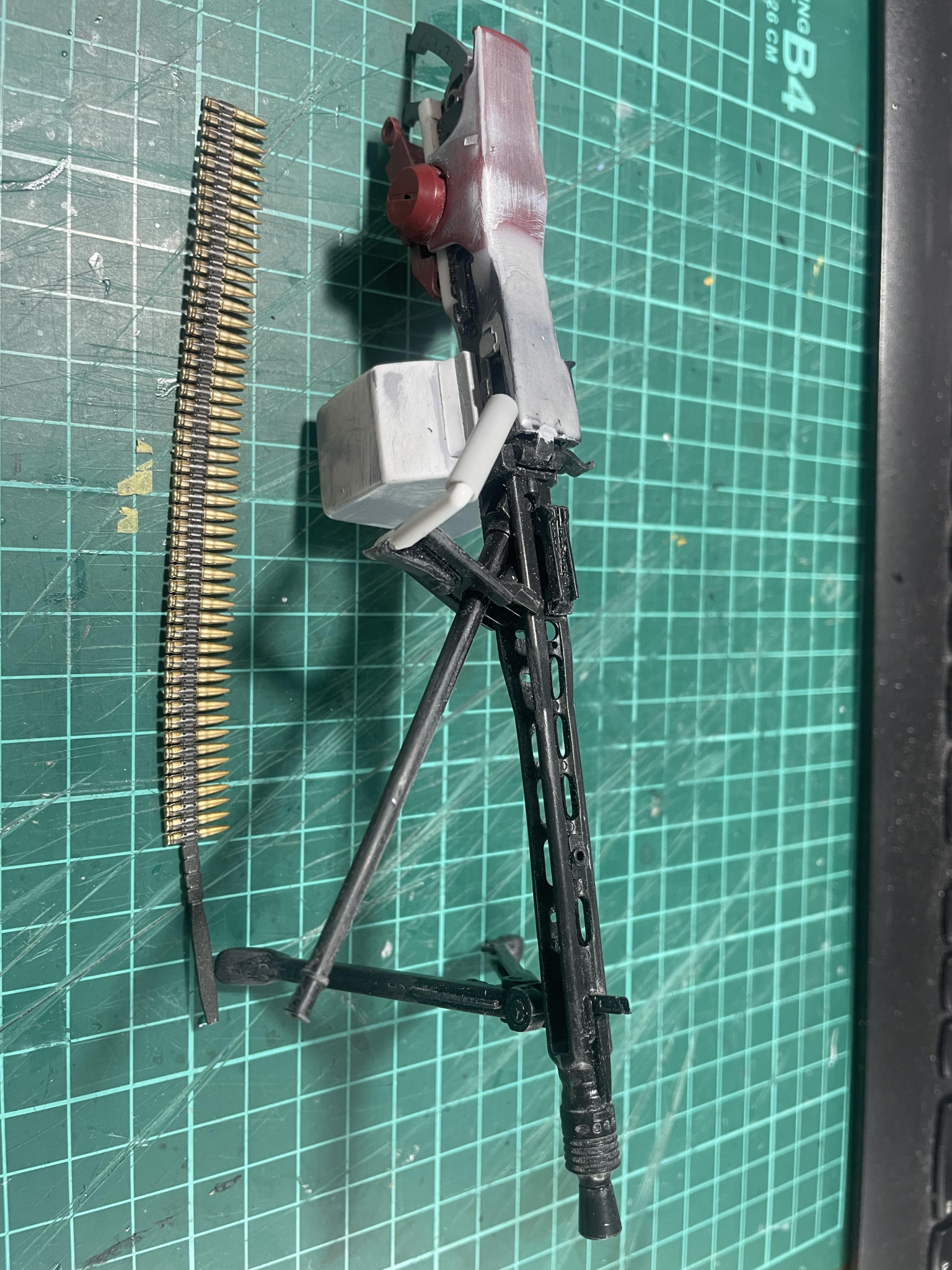 かまかま 2025.12/04更新 ドワッジ改俺仕様 8 9 いいねしたモデラー(9) 0 作品を共有 MG42改はこんな感じで。あまりゴテゴテさせずにシンプルにしました。グリップは後方と上面に設置。両手持ち仕様です。バレル交換用に展開したり、弾丸セット用にフタが開くようになっていますが、最終的には接着すると思います。 制作中 (改造 コメント コメントをして応援しよう コメントにはログインが必要です かまかま 40年前の中学生の頃にガンプラに目覚め、途中、仕事が多忙になりかなりのブランクがありましたが、一昨年よりボチボチ復活しました。ブラックな仕事環境なため、制作スピードが極端に遅いので、一つ作るのに2〜3ヶ月かかります。スジボリがうまくなりたい今日この頃です。 8 ヘイズル・ラー俺設定 MGヘイズル改+フルドドでヘイズル・ラーにしました。肩アーマ… 5 ヘイズルなんちゃってアウスラでっちあげギガンティックアーム なかなか買えないヘイズルアウスラにイラついて、でっちあげまし… 5 TR-6バーザムⅡ レジオン鹵獲仕様オリジナルカラー 塗装をしようとしたら、赤が足りない!注文したらカード情報入力… 4 高機動型ゲルググ サイコザク風 ジョニーライデンゲルググをサイコザク風ということで、各所にバ… かまかまさんのページ この作品をお薦め作品に設定する Please login to update your profile! Please login to update your profile! Please login to update your profile! Please login to update your profile!