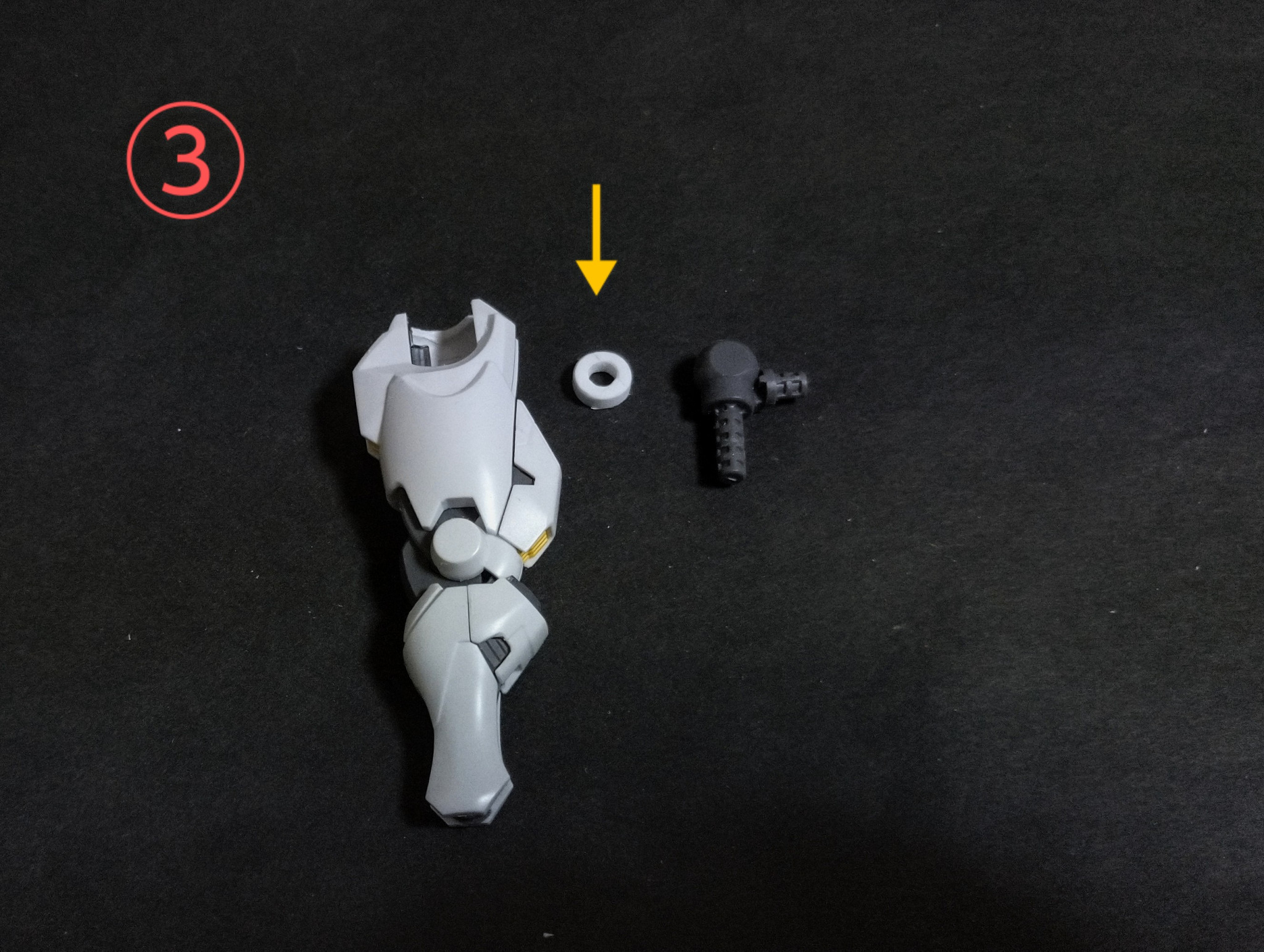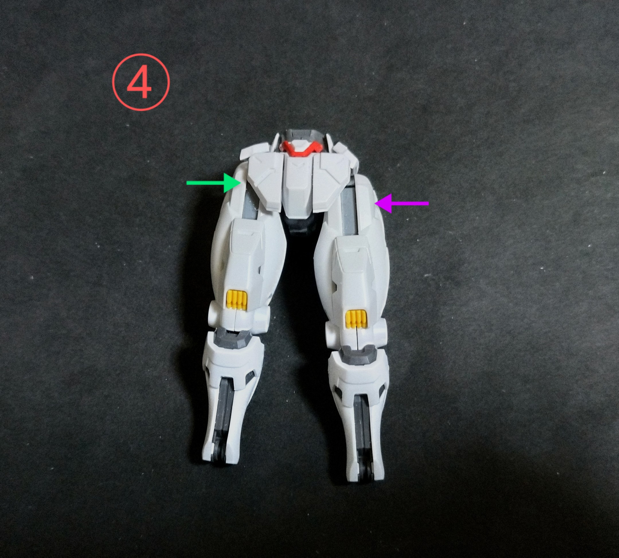 ③股関節の可動パーツにプラ板でスペーサーを造り脚の付け根位置を移動。