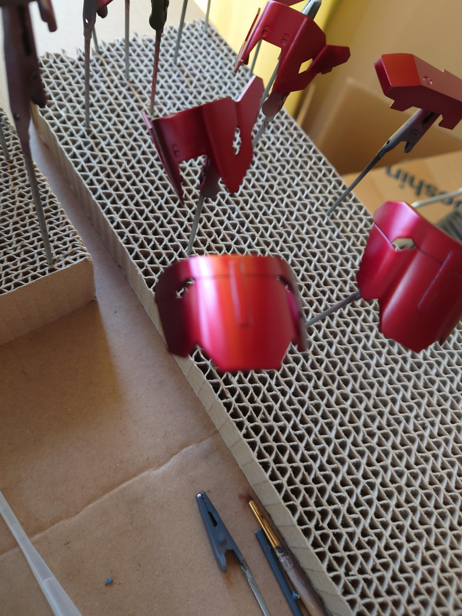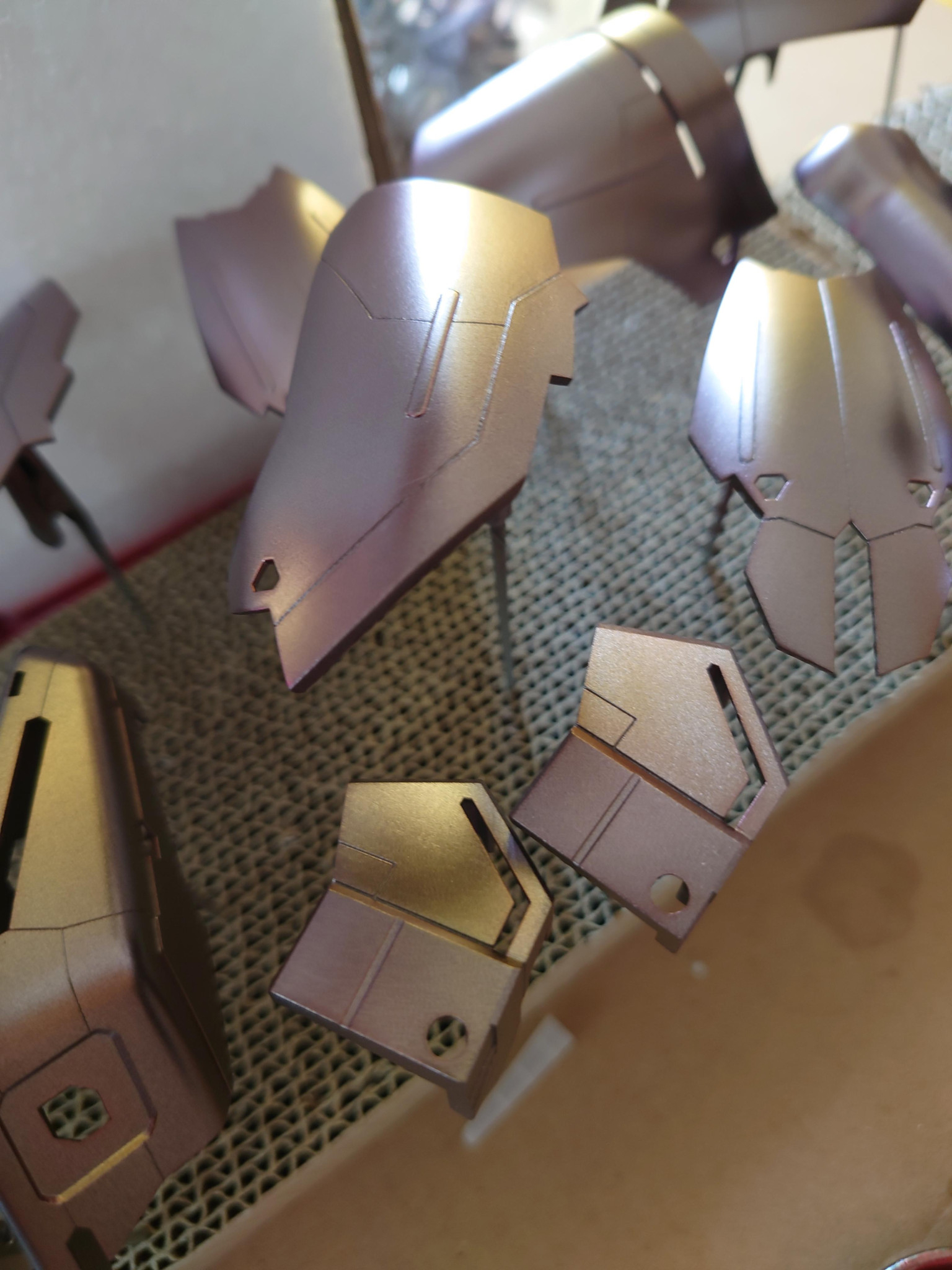 薩摩模型塗装工務店さんコメントありがとうございます😊下地は黒→シルバー、ゴールド、アイアンの3色で分けて、クリアーレッドで塗装しています😁