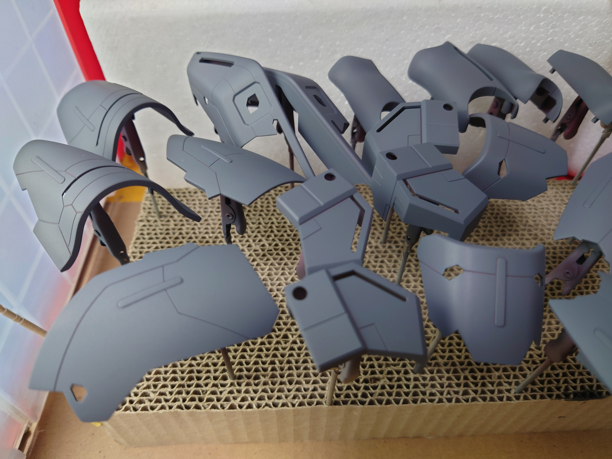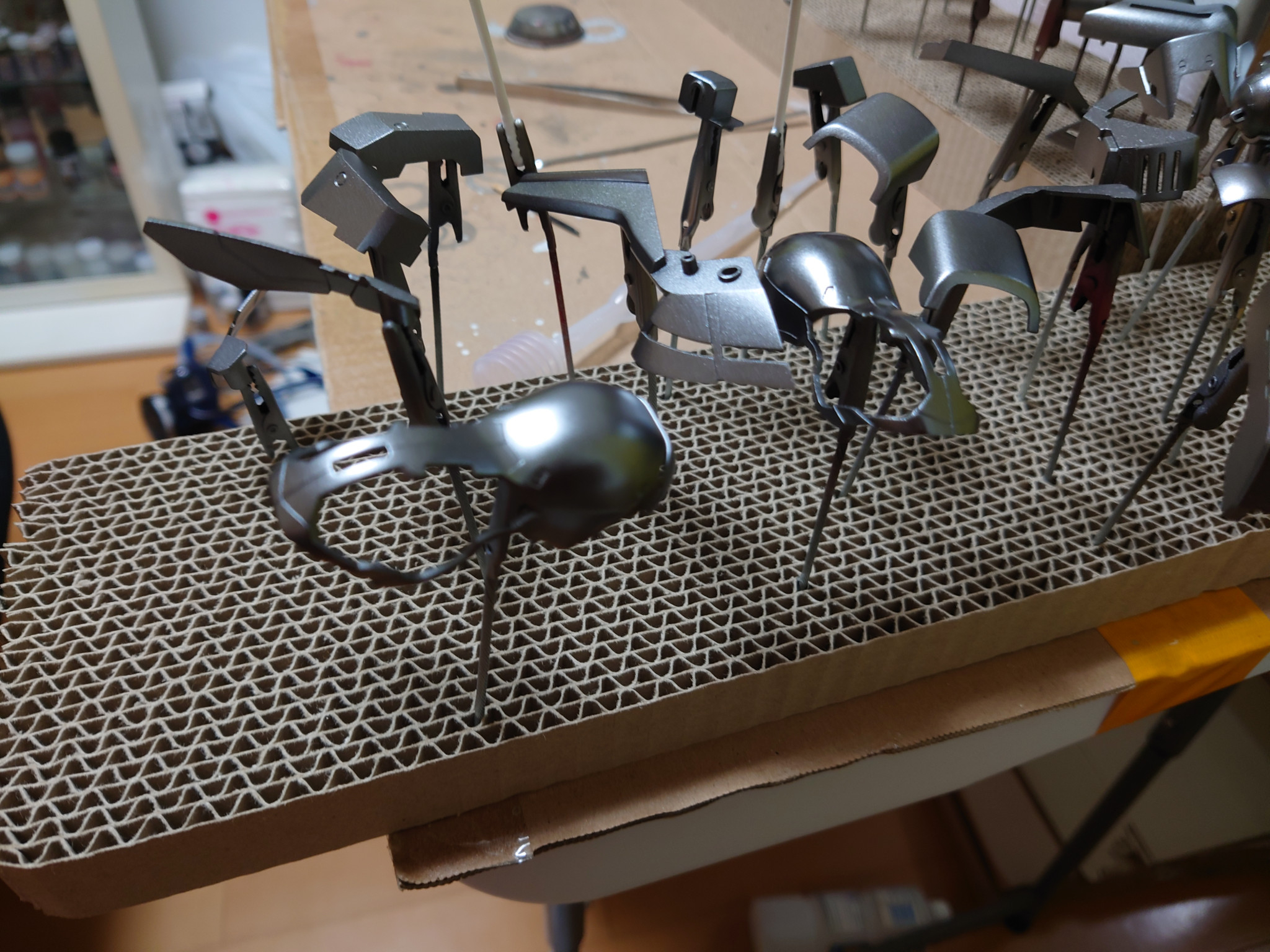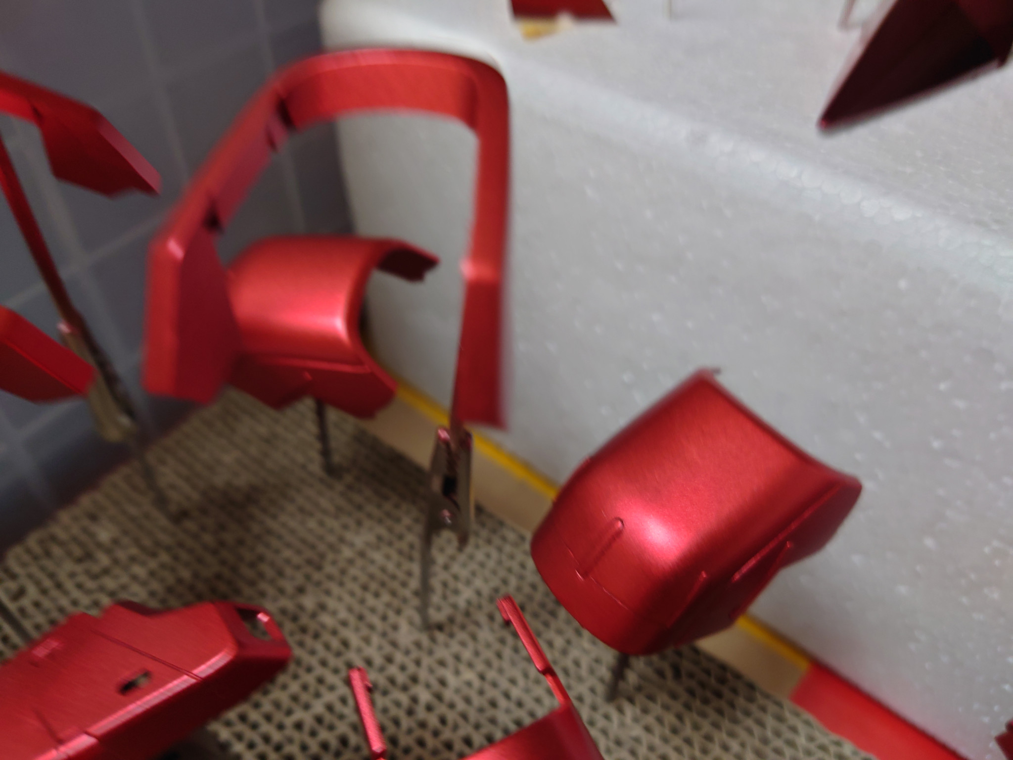 ポン太 2025.12/06更新 赤は赤でも…「サザビーver.ka」制作中 32 12 いいねしたモデラー(12) 2 作品を共有 説明書に沿って3色の赤でキャンディー塗装!と息を巻きながら取りかかった赤です。下地を変える事で大丈夫だろうと軽く考えてましたが、目視でも中間の赤と薄い赤が区別がつきにくく、どうしたもんかと悩みながら塗装したのが、前腕パーツです😅この後どんな仕上がりに出来るのか、不安がよぎる今日この頃です。 制作中 コメント コメントをして応援しよう コメントにはログインが必要です ポン太 6時間前 薩摩模型塗装工務店さんコメントありがとうございます😊下地は黒→シルバー、ゴールド、アイアンの3色で分けて、クリアーレッドで塗装しています😁 下地でグラデーション!!そんな方法もあったんですね🤩次回のキャンディー塗装の際にやってみます😆 薩摩模型塗装工務店 7時間前 下地のメタリックはシルバーだけですか? 赤にメリハリつけるなら、クリアレッドに似た系統を少し足すなどしたらちょっと変化したりしますし、調色がめんどくさかったら、下地をグラデーションにするとかすると楽しいかもですよ‼️ ポン太 50代になり、久々にガンプラ制作にハマってます。老眼もあり、なかなか細かい作業が難しいですが、頑張って作ってますので、良かったら見てやって下さい。 4 シャア専用ザク 10年程前に仮組み途中で放置していたシャア専用ザクでキャンデ… ポン太さんのページ この作品をお薦め作品に設定する Please login to update your profile! Please login to update your profile! Please login to update your profile! Please login to update your profile!