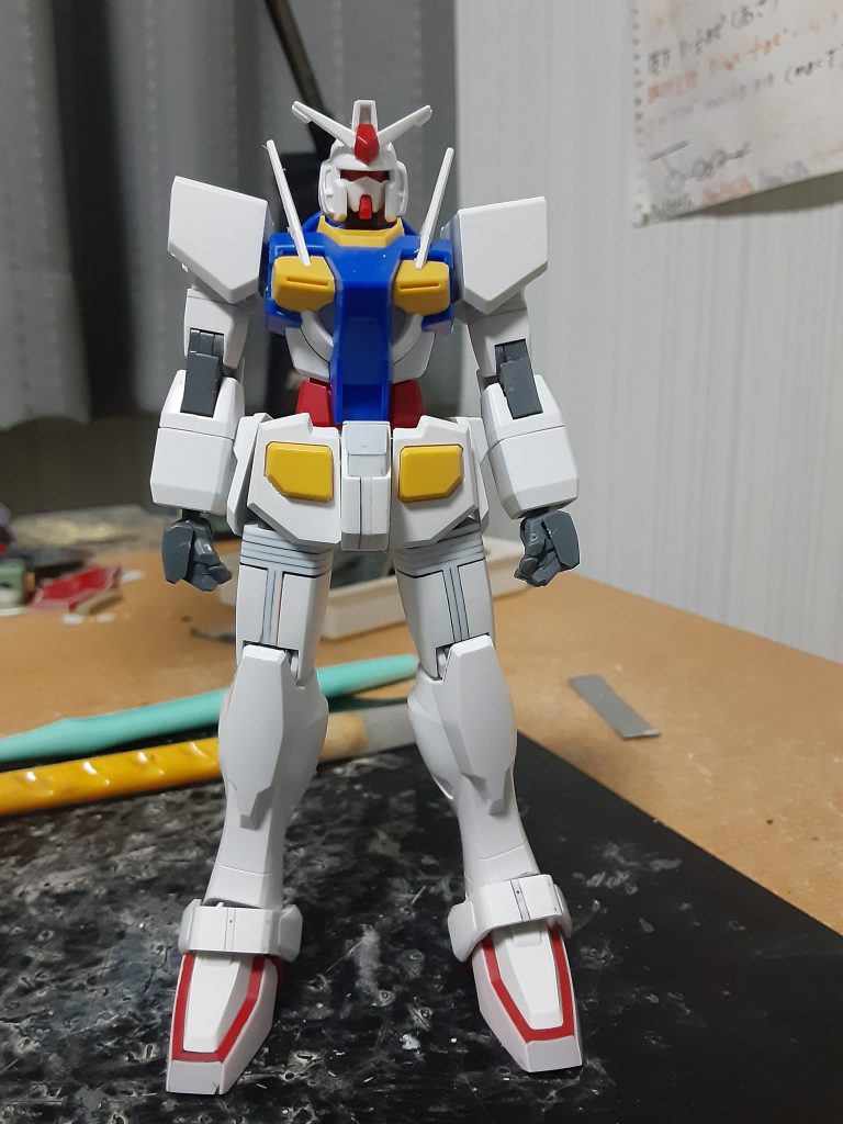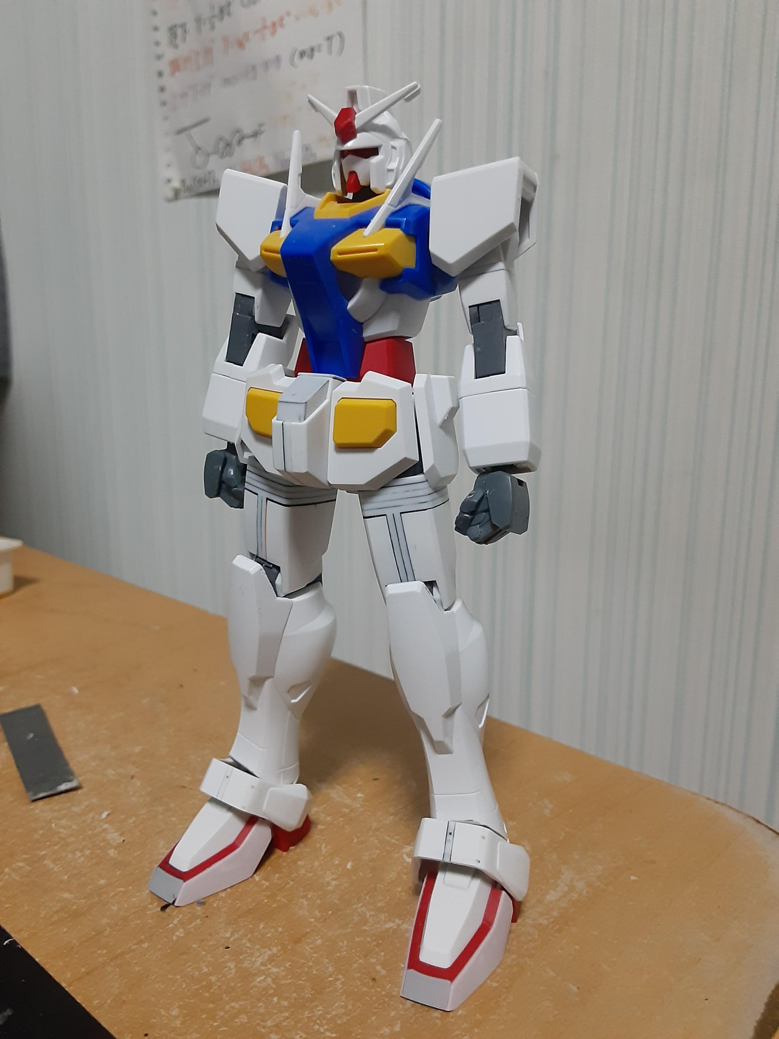 0ガンダムは細くない!③|だいたいグミさんの制作中の投稿|GUNSTA(ガンスタ)の予告通り、胴を1.5mm、上腕を1mm。腕の方はプラ板をケチってランナータグを使っています。