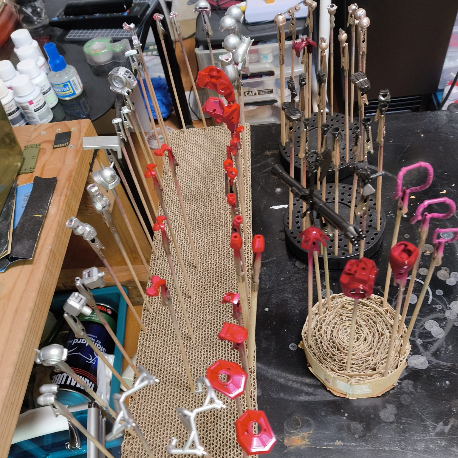 赤クリアーと青クリアーの配合を1対1にしてゴールドの下塗りに…