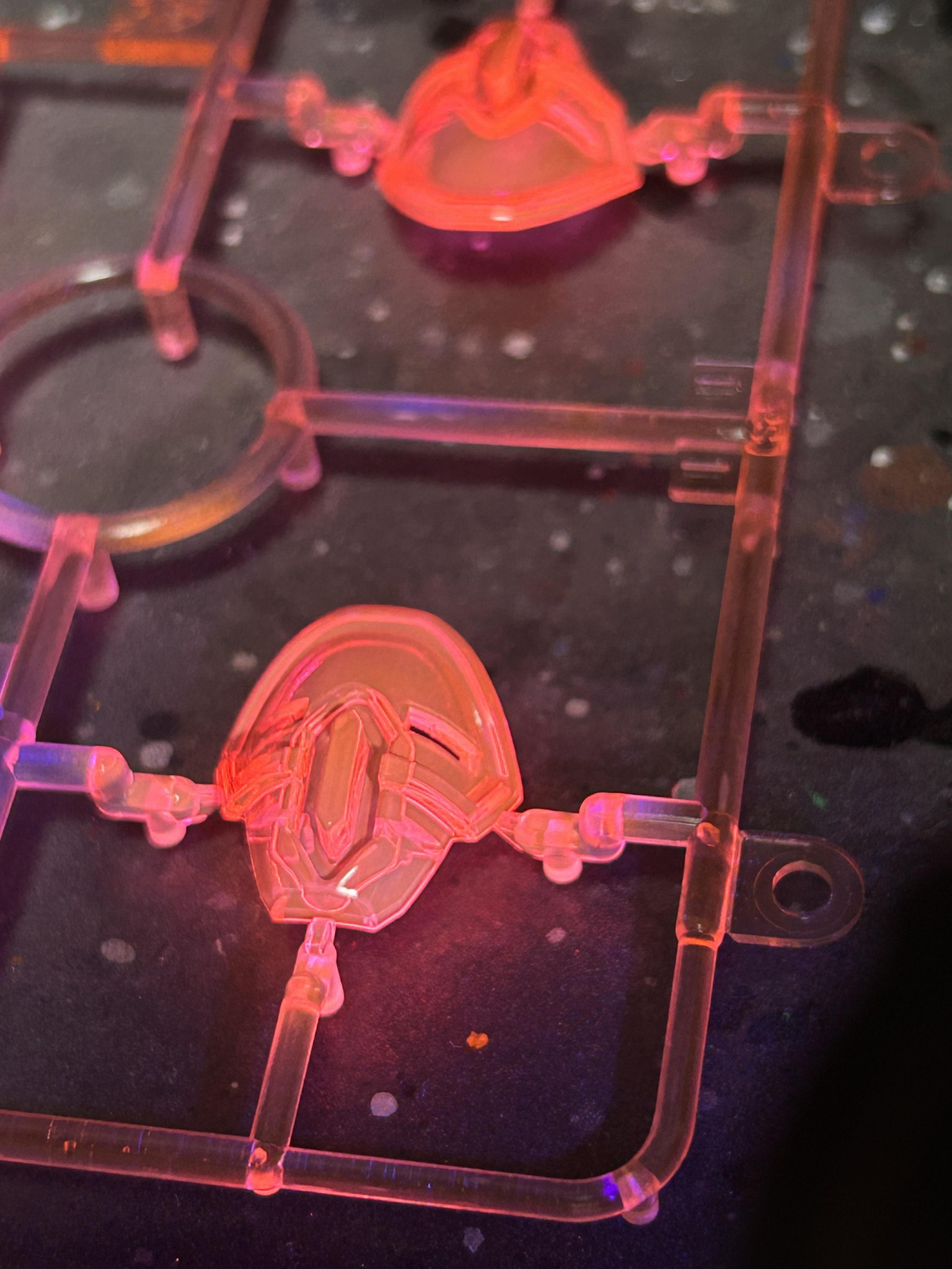 Yushi 2025.12/10更新 蛍光塗料「MG バルバトス」制作中 16 17 いいねしたモデラー(17) 0 作品を共有 クリアピンクのパーツがありますが、UVライトを当てると赤みが強めに発光します。 蛍光ピンクに蛍光クリアや蛍光ブルーを混ぜるとピンクに発光するので、調色した蛍光ピンクで塗装してみたら、地の蛍光ピンクが強く赤みが思っていた以上に出てしまったので、直接蛍光クリアーを塗ってみました。 かなり、いい感じのピンクに発光するようになりました。 クリアピンクのパーツには蛍光クリアーですね。 制作中 コメント コメントをして応援しよう コメントにはログインが必要です Yushi 6年くらい前からガンプラ始めました。月2体程度のペースで作ってます。 4 完成 ようやく完成しました。長かったです。 いろいろ想定外のことが… 4 ガナーザクウォーリア ようやく完成しました。 予定通りのペースでは進められませんで… 4 ナドレ ようやく1機目完成しました。装備が少なめで全体的にシンプルな… 4 塗り分け地獄 ようやく完成ということにします。 ビームライフルがなによりめ… Yushiさんのページ この作品をお薦め作品に設定する Please login to update your profile! Please login to update your profile! Please login to update your profile! Please login to update your profile!