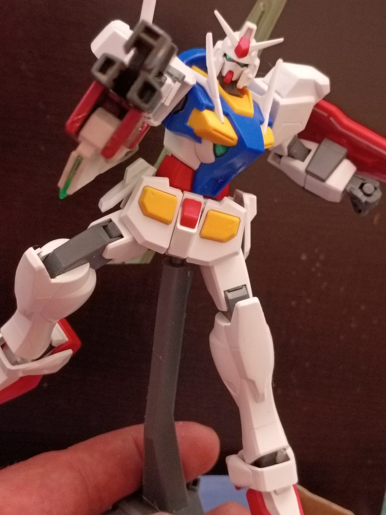 ネオジム磁石と少量のプラスチック板を使うことで、GNソード3を私の0ガンダムに取り付けることができた。(3枚目)