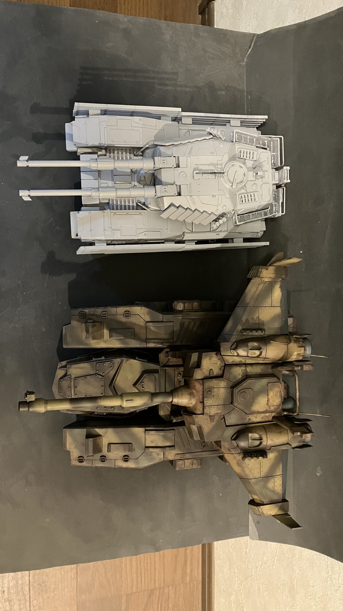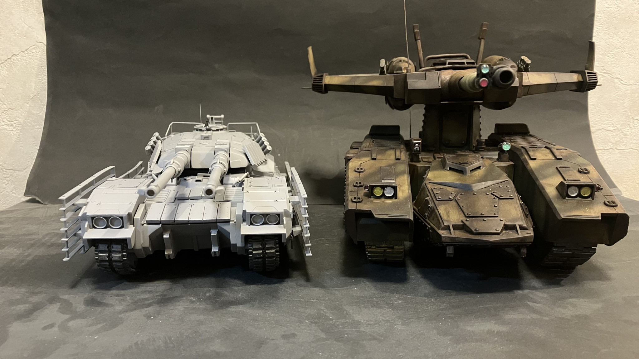 蒼き鷹 2025.12/13更新 1/48 61式戦車制作中 56 37 いいねしたモデラー(37) 10 作品を共有 1/48 61式戦車 製作48〜52日目 サフ吹き完了(//∇//) サイドスカートにスラットアーマーを装備 リアクティブアーマー+スラットアーマーを装備した現代の戦車と空想の戦車との融合 装備無しの通常版の2パターンを再現 去年フルスクラッチした1/48マゼラ・アタックとの大きさ比較もしました(//∇//) 写真では分かりづらいですが、全長はあまり変わらず全高と全幅が2回りほど違います これで本塗装に入れます(^ν^) 制作中 コメント コメントをして応援しよう コメントにはログインが必要です RaMuShizu 2日前 スラットアーマーにされたんですね。この61式はマジ凄いと思うのですが少し意見具申させて下さい。スラットをもう1枚づつ間にかました方がバランスが取れる気がします。あと可能であれば格子で幾つかのブロックに分けた方がディテールがより増してスッキリとした感じになるのではないかと…。生意気な事を申し上げて失礼千万と思いつつもここまでいつも楽しみに拝見させて頂いた結果、いてもたってもいられなくなりコメントさせて頂きました🙇これ模コン出されるんですよね?どんな形で紹介されるのか?今から楽しみです😊 蒼き鷹 1日前 コメントありがとうございます♪ (*゚∀゚*) 今現在の間隔は5ミリ、実寸法240ミリ ちなみに61式戦車は155ミリ滑空砲で 間隔を2.5ミリにすると120ミリとザクマシンガンと一緒 それでも間隔は広いでしょうが、はたから見るとシュルツェンのようになってそうですね 格子、これは縦の丸棒のことですかね〜 サイドスカートの形状合わせでやったから間隔がバラバラ、ここも間隔が広い方だけ足すかバランスを変えるかですね 作り直してver2.0としてみます 締め切りが1月いっぱいだから間に合います RaMuShizu 1日前 私はよく「エバーグリーン」の角材を使用するのですが輸入品なので高額なんですよね…(最近は置いている店も少ない)断面がL型やT型、H型等バリエーションがとにかく豊富でスラットアーマー作るのにはもってこいです。おっしゃっている縦の丸棒同士の間に四方枠を作りそれぞれの枠にスラットを組み込んで並べる形でしようか。高さがある部分は上下に分けた方が良いのでは?と思います。Wikipediaのスラットアーマーに載っている「ウルフハウンド」みたいな感じは痺れます…ただこれをフルスクラッチするのはメチャ大変ですね😅現在のスラット間隔5ミリなんですね…これ以上詰めるのは目が追いつきませんね😅でも頑張って下さい!蒼き鷹さんの技術なら出来ますよ!多分…😄嫌われちゃったらやだなーと心配してましたが返信ありがとうございました。とても嬉しいのとver2.0とても楽しみにしてます😊 蒼き鷹 1日前 自分が参考にしたのはM1 13A 3のスラットアーマーです 調べて見たウルフハウンドも同じ雰囲気のスラットアーマーですね デザインの案を探してた時、見てました 名前は知らなかったです 参考にした車両はボディに取り付けているアングルがゴツいから採用しました^ – ^ 両面テープで固定するため設置面が必要に加え、簡単に取り外し出来るようにしたかったのです ver2.0は縦横の間隔を狭めたスラットアーマーにして行きます(//∇//) ニャア軍曹 2日前 サイドに造り込んだディテールも格子から充分見えますから、すんばらしい判断ですね😿✨ マゼラもですが、なんともゴツい🤤✨✨ 朝から大変なご馳走、最高ですヽ(=´▽`=)ノ 蒼き鷹 1日前 コメントありがとうございます♪ (⌒▽⌒) 普段見ないサイズだから想像し難いと思います^ – ^ こういう物こそ実物を見て貰いたいですわ(//∇//) ますらお 2日前 うわーい!スラットアーマーだぁああ(zaku-kao2)どれだけ私を狂喜させる気ですか、素晴らしい造形。リベットも追加されて影が出て情報量増えてすごくええです…今フルスクラッチ挑戦してますが、及ばないながら参考にさせていただきます! 蒼き鷹 2日前 コメントありがとうございます♪ =(^.^)= スラットアーマーは仮固定だから歪んでたりしてますが完成しました(//∇//) スラットアーマーの板の間隔、縮尺を考えるともっと狭めた方(5ミリから3ミリ)が良いのですが、今度は側面のディテールが死ぬ可能性が高いと思いました 小さ過ぎだから凸では無く凹でリベット打ち込みました ますらおさんの細かいディテールやミリタリーの知識には及びませんよ〜 ますらお 2日前 斜めから見た時の隙間は良いき、側面デディールを潰さないためにもいいと思います(zaku-kao2)なるほど、確かに凹リベットも使うのもいいですね…ほんま参考になります! 蒼き鷹 1日前 気になってたスラットアーマー、助言を貰い間隔を狭めてみる事にしました ver2.0です(//∇//) 蒼き鷹 主に旧キットとHGを作ってます。 改造する際はキットのみでジャンクパーツをなるべく使わずプラ板などで作製します。 Twitterの方もよろしくお願いします🥺 蒼き鷹さんがお薦めする作品 1/48 オリジン版 マゼラ・アタック(