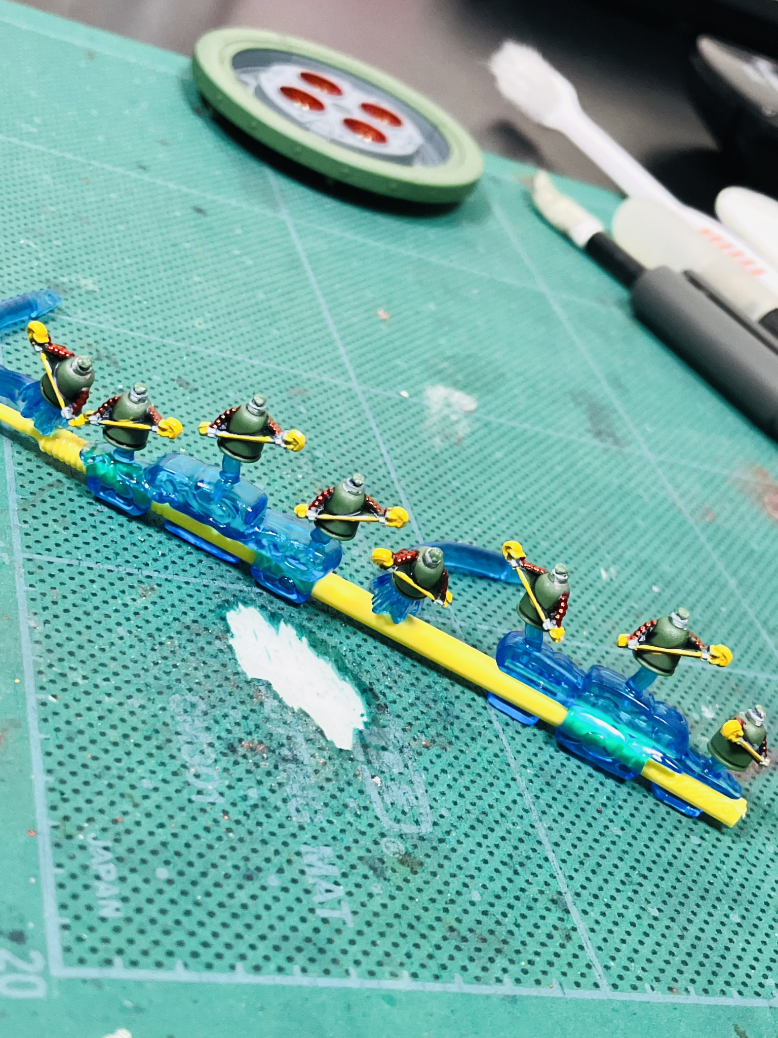 ASUR 2025.12/26更新 思ったより楽しいミニマンダラ🥳 56 29 いいねしたモデラー(29) 7 作品を共有 HGFCマンダラガンダムを囲む8体のミニマンダラ🥳 このサイズ感、そもそも塗装するかも悩んでいましたし2,3個完成させて🍵お茶をにごそうか思案を経て、部分塗装しました🥴 マーカーでチマチマやってると、おぉ何コレ⁉️楽しい☺️🥰 細部は🖌️筆ペンタイプのスミ入れマーカーで誤魔化すと🥳(🈁大事😬) う〜ん便利です🤩 いったん納得したんですが公式HPを見るとVアンテナを追い塗装☝️😉(塗装前📷2/4) なんかっぽくなったんで結果オーライ🙆♂️🆗👍 制作中 マンダラガンダム 機動武闘伝Gガンダム ゴッドガンダム ミニマンダラ 簡単フィニッシュ HG HGFC コメント コメントをして応援しよう コメントにはログインが必要です cinnamon-1 1時間前 良い雰囲気が出ていますね👍 ミニマンダラかわいいですね😊 Hiro0079 5時間前 かわいい🩷 ASUR 1時間前 🧚寝てる間にスミ入れぐらいしてくれるんじゃないかと🥳 ミズカともかさ 11時間前 お疲れ様です😊 凄い‼️ 見事な塗り分け😆👍✨ ツボるお気持ちは同意できます (*-ω-) ウンウン なんか、こう・・・脳内麻薬的なモノが分泌されるンですかねぇ🤔 ((ヾ(≧皿≦メ)ノ)) テンションあげあげ⤴️⤴️ 的な感じ🎶🎶 ASUR 6時間前 コレは難関🤔とか思ってたのでマーカーでも思ったよりも雰囲気出たのが🤯ツボったのかも知れません🥳 このサイズだとむしろマーカーの方が緊張しなくていいのかも🥰👍 さーしースー 11時間前 こう小さいのが並ぶと可愛らしいですね☺️ ASUR 6時間前 7人+1人の小人ですね🧚♀️🧚 作っててテンション上がりました⤴️🥳 ASUR 基本は成形色、部分塗装にスミ入れの簡単フィニッシュに💪 メタルパーツとデカール、メタリックマーカーの部分塗装でそれっぽくする、簡単フィニッシュちょいプラス😁 合わせ目消しは放置です🥳 目立つゲート跡はゲートリムーバーで👍 投稿しているガンプラで全塗装は過去の作品です。 現在は、生活環境&時間的にもヤスリがけ工作や、エアブラシなど全塗装は厳しく、 簡単フィニッシュちょいプラスで😙 これなら数週間、長くても1か月で1作品、とりあえず作り続けることが一番楽しい時間🤤 みなさんにご覧いただき嬉しく思います😆 ROBOSTAアカウント:https://robosta.jp/author/ASUR/ ASURさんがお薦めする作品 MG ゼータガンダム ver.Ka 簡単フィニッシュちょいプ… HGガンダムファラクト 簡単フィニッシュちょいプラス HG ガンダムグシオン 簡単フィニッシュちょいプラス HGトロハチ 簡単フィニッシュちょいプラス 13 MG ガンダムF91 ver2.0 ハリソン•マディン専用機… マスターグレードガンダムF91 ver2.0 ハリソン•マデ… 13 HGUCハイザック•カスタム A.O.Z RE-BOOT版 … HGUCハイザック•カスタム A.O.Z RE-BOOT版 … 1 🏷️タグ「〜バトンをつなぐ〜」フォローで交通整理👮 🏃♀️バトンリレー🏃♂️のタグ、ていうか「タグ」でフォロ… 16 HG 軍警ザク 簡単フィニッシュちょいプラス ガンダムジークアクスより、HG軍警ザクです😉 成形色にメタリ… ASURさんのページ この作品をお薦め作品に設定する Please login to update your profile! Please login to update your profile! Please login to update your profile! Please login to update your profile!