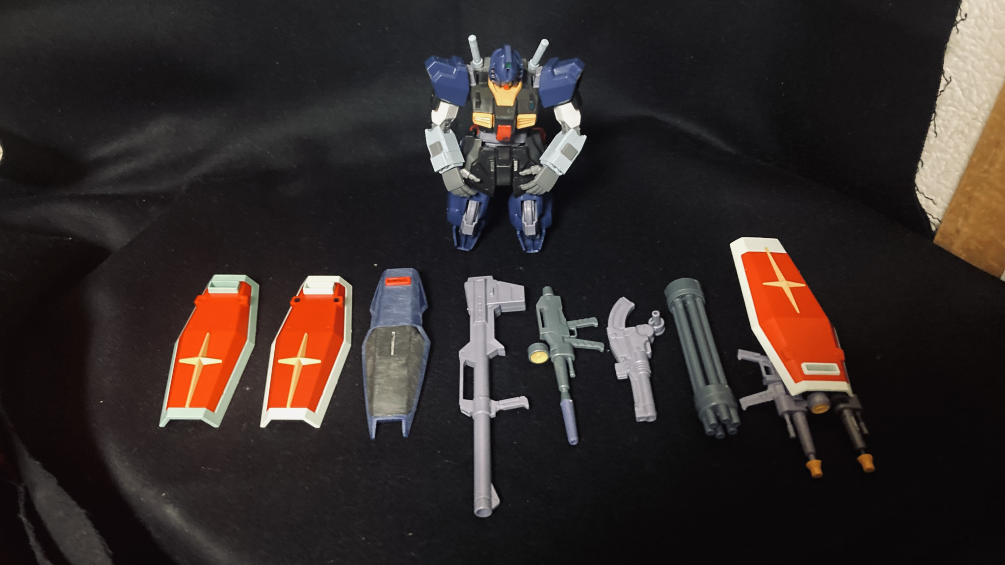 今のところこういう感じです。これに+ストライカーカスタムのナックルダガーをスクラッチで作成する予定です。ガトリングパーツは、後々スクラッチを活用してフレームランチャー風武装を作るためのパーツです(7枚目)。