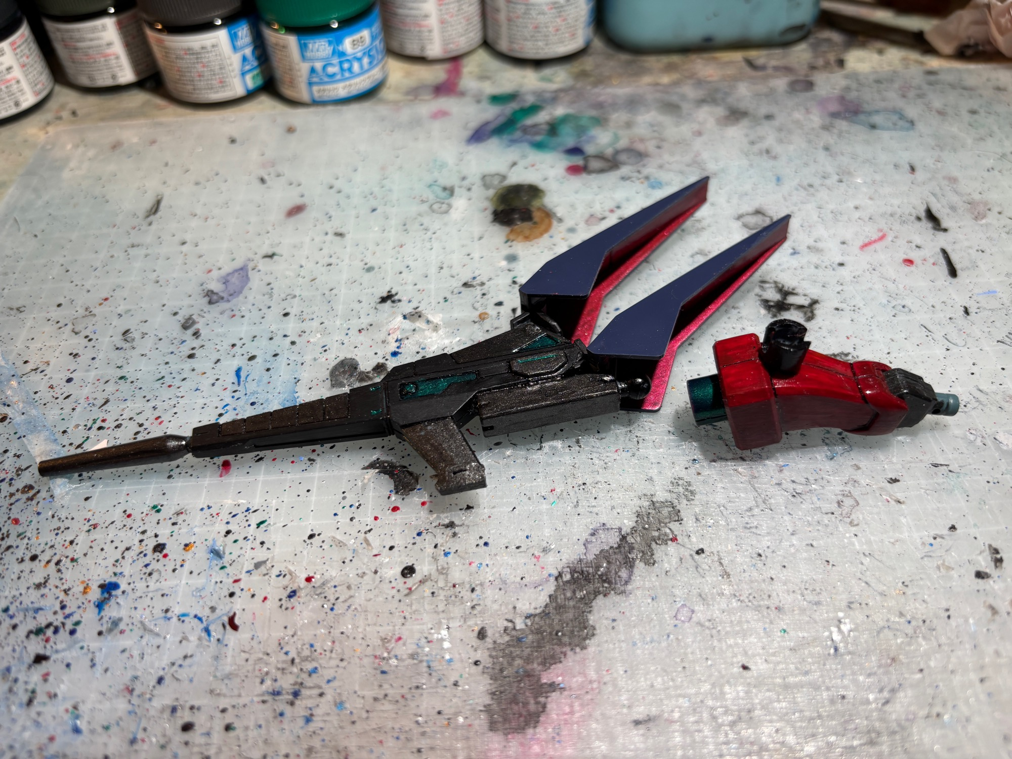 masamine 2025.12/15更新 スカートに色々盛って、尚且つ変形を忘れない‼︎ 24 12 いいねしたモデラー(12) 0 作品を共有 バウンド・ドックのスカートにナラティブガンダムb装備を正面に接着、サイコミューキャプチャー機能を装備、左右中央に余剰PCジョイントを埋込、ティターンズ開発のコンポジットシールドブースターを装備、左右後方にはボールジョイントと3㎜軸パーツを挟み込むように取付、バイアラン余剰パーツのブースターを装備させた。 右手手首部にボールジョイントを取付ライフルを装着(ライフルの持ち手を切断、ボールジョイントへ変更)、バイアランの脇につけるスラスターを稼働シールドとして装備、フレキシブルに可動するようにした。 制作中 バウンドドッグ 改造 ティターンズ 可変機 コメント コメントをして応援しよう コメントにはログインが必要です masamine 自宅の床下が夢のガンプラワールド! masamineです。 夜な夜な家族に隠れながら細々と活動しております。故にトップコート吹付がギリギリで筆塗りandウェザリングが基本です。 これからよろしくお願いします。 16 バウンド・ドック NT-D 『シーマガラハウは生きていた。』と言う妄想設定を膨らまし、U… 14 HG バイアランカスタム2号機 フライルー 『シーマガラハウは生きていた。』と言う妄想設定、第三弾。バイ… 14 HG バイアランカスタム1号機 アルティメット 『シーマガラハウは生きていた。』と言う妄想設定、第三弾。バイ… 17 HG シナンジュ TYPE F アルティメット 出撃 『シーマガラハウは生きていた。』と言う妄想設定、第二弾。前作… masamineさんのページ この作品をお薦め作品に設定する Please login to update your profile! Please login to update your profile! Please login to update your profile! Please login to update your profile!
