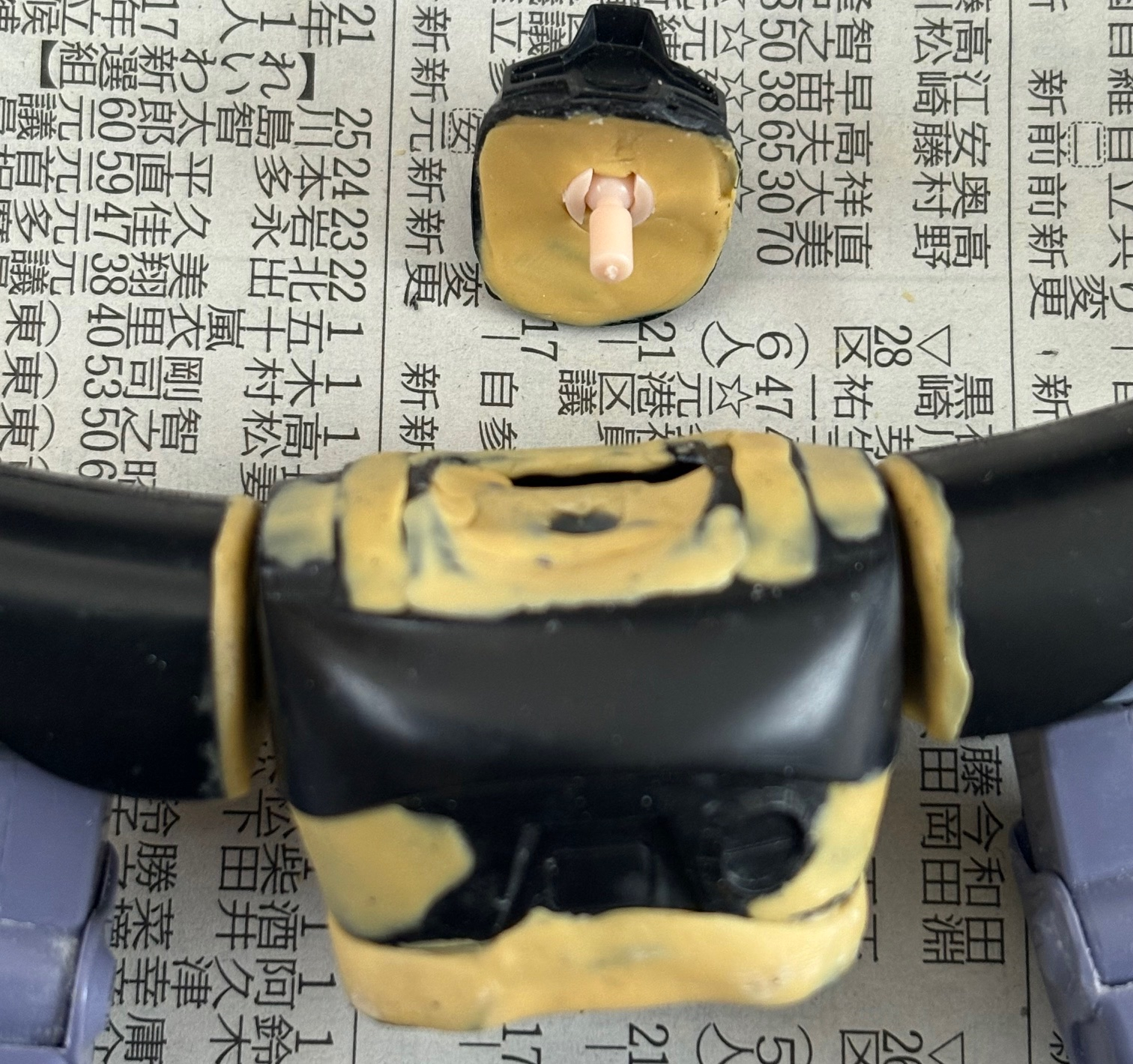 - 胸やスネの装甲がパケ絵とちょっと違うので、手持ちのアサルトキングダムやMIAを参考にパテ盛りした。
