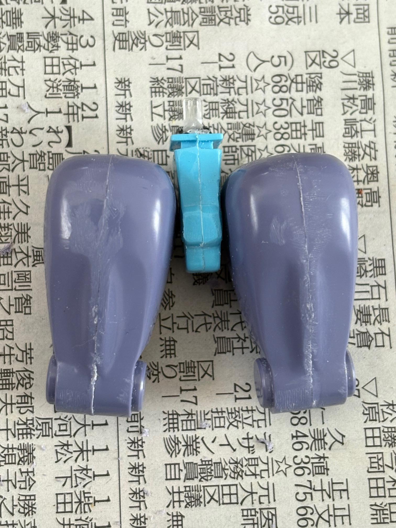 - 腰部分は余剰ランナーを使ってジョイントの受けを作り、上半身とつなぎ、股関節にはジャンクパーツとなったギャンの股関節をミキシング。