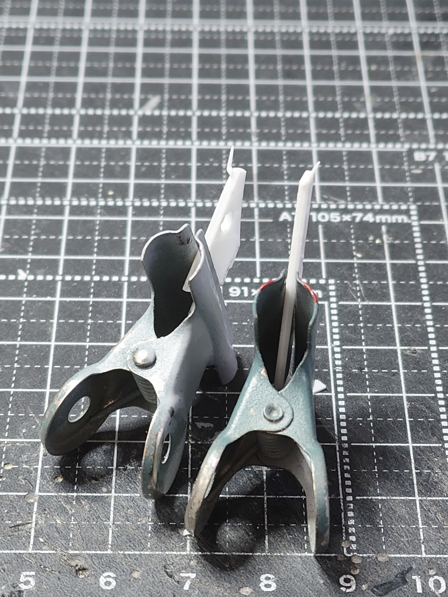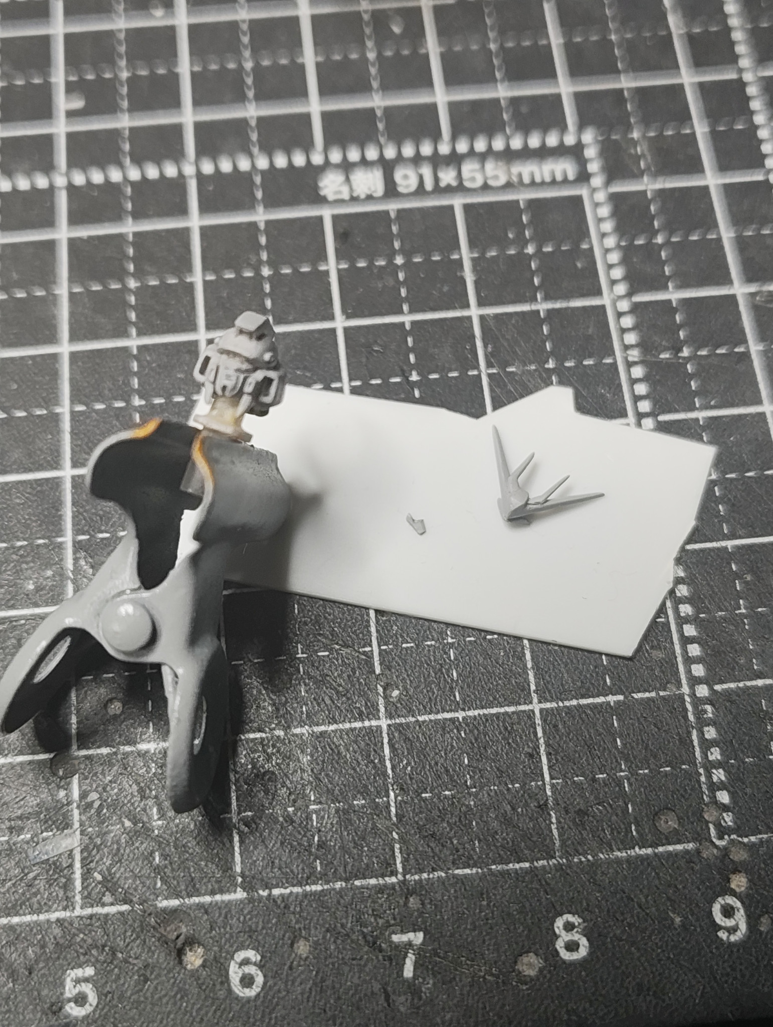 ①アンテナブレードの小さいほうもプラ板で切り出し、持ち手のプラ板に接着してヤスリで整える
