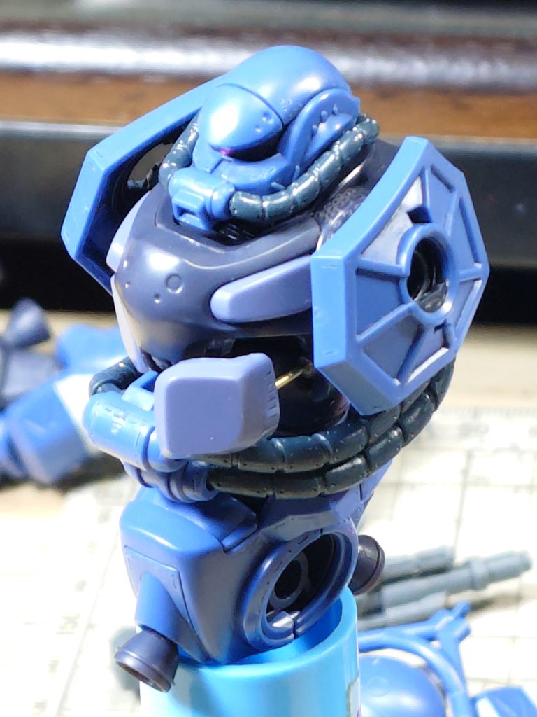 ディテールアップ再開です。作成開始時から、やりたいと思っていたコクピットハッチの開閉を実行。開閉はわりと簡単にできましたが、内部まではちょっと作れませんね。あと組んでいる最中に改造していた足先の可動化。シューズのような(エヴァ系とも)足は、最初から分割してくれと言わんばかりな構造です。