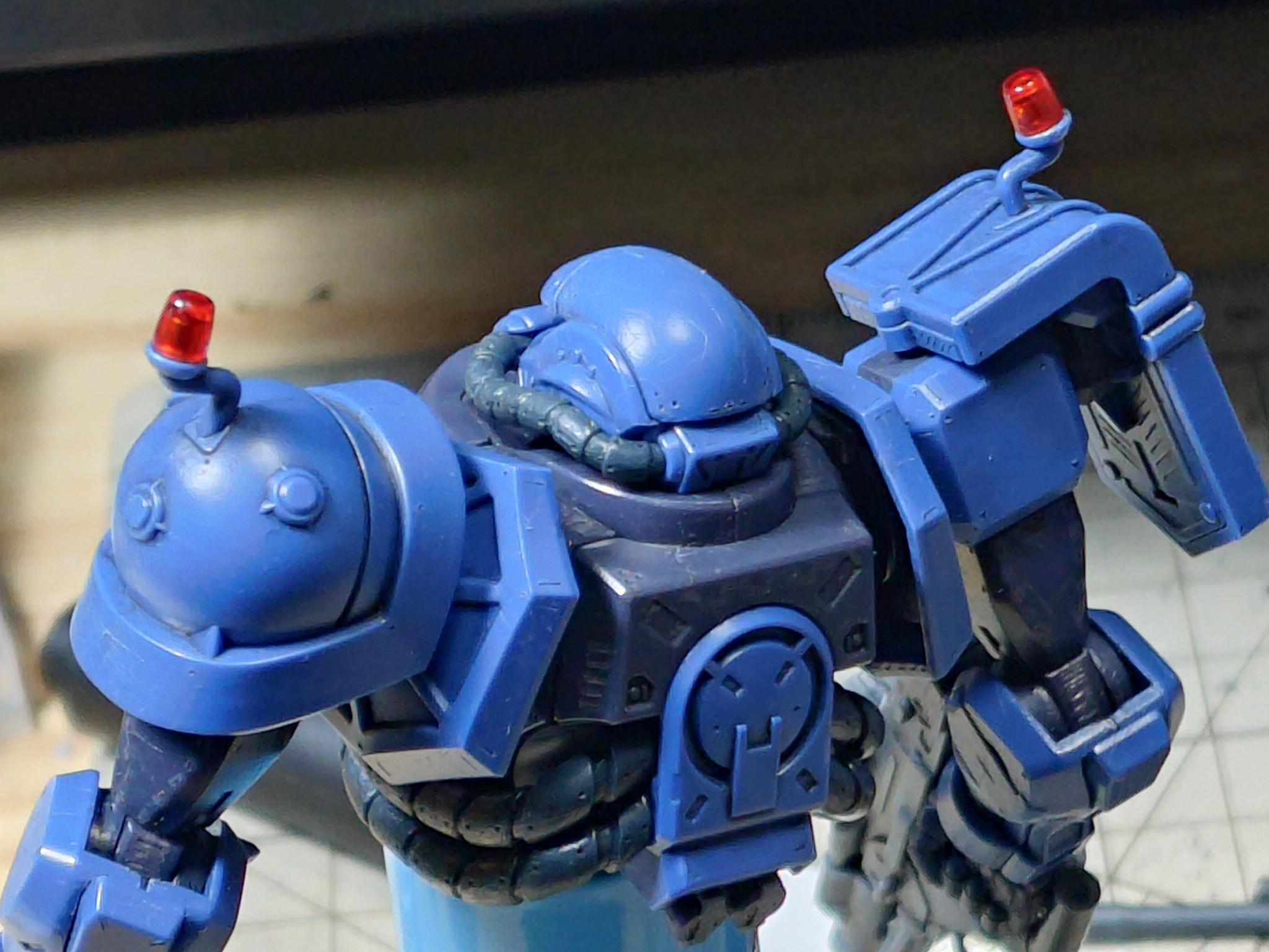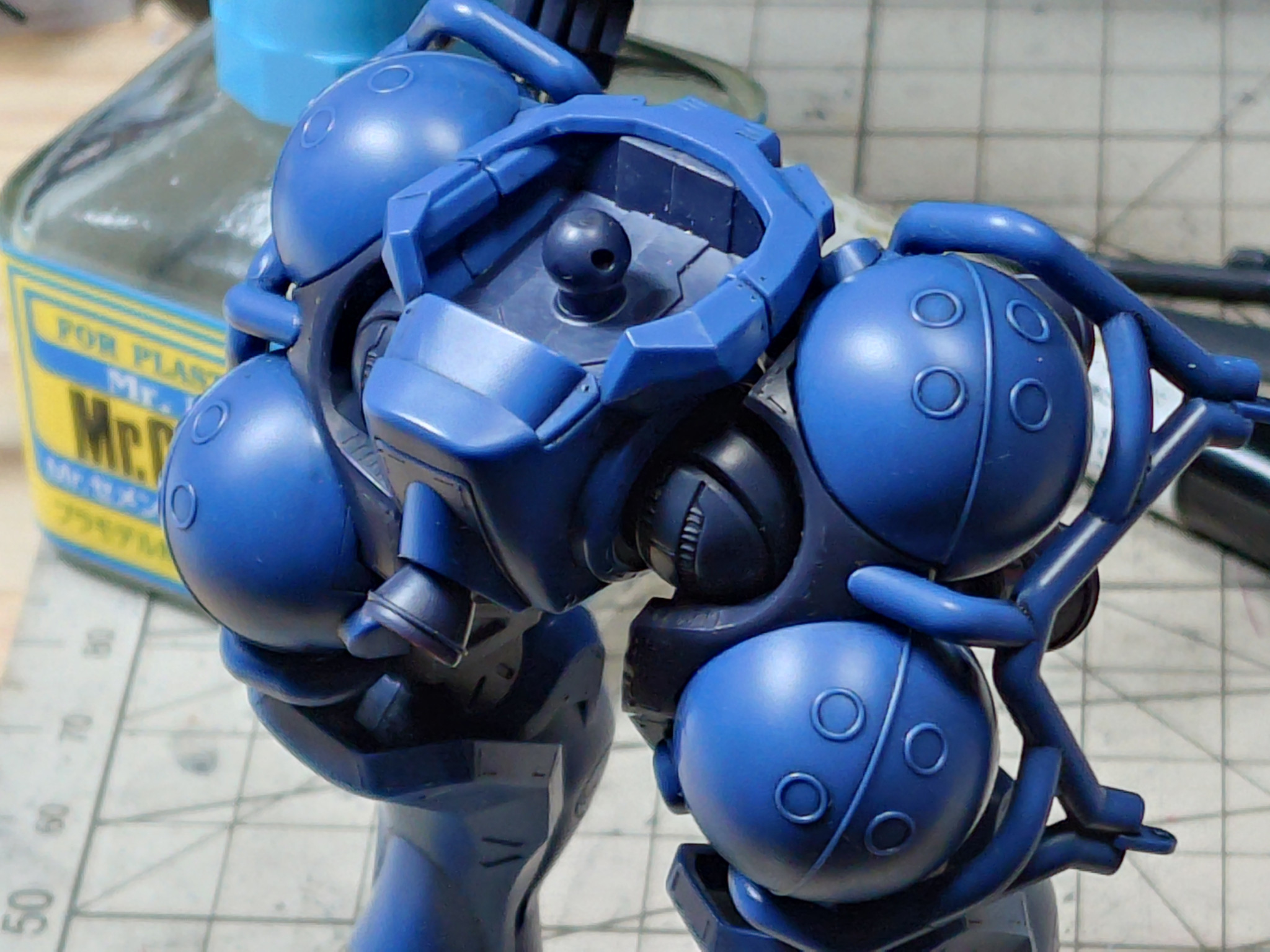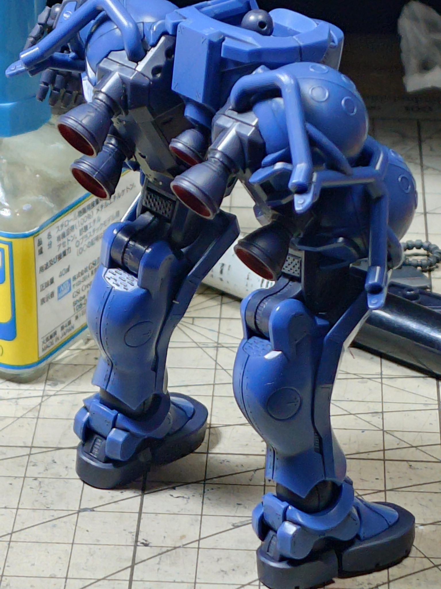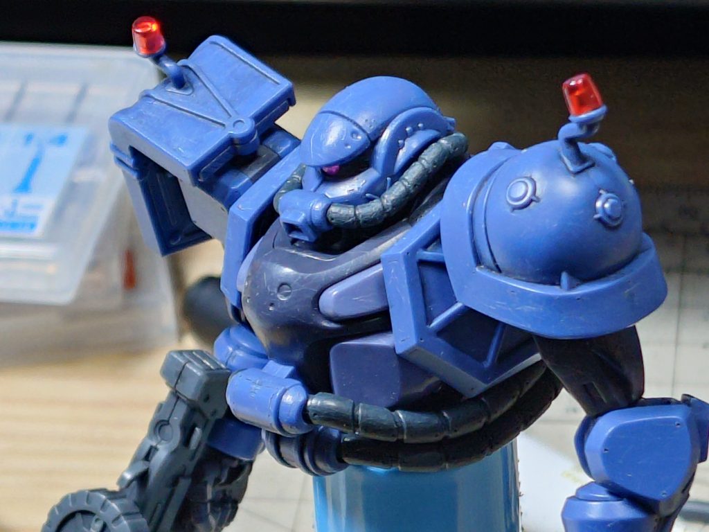汚しでウォッシングしていたら、割れました。溶剤が強くないヤツだと思ってたのですが、相性なのですかね〜 割れを隠すのに傷を追加。まぁ軍警ザクは稼働率すごそうだから、GQの中でもキズだらけな方でしょう。上半身傷済と下半身傷未の比較でも、済の方がリアルかと。塗装品には不向きな方法ですが、お手軽にディテールアップ出来ます。