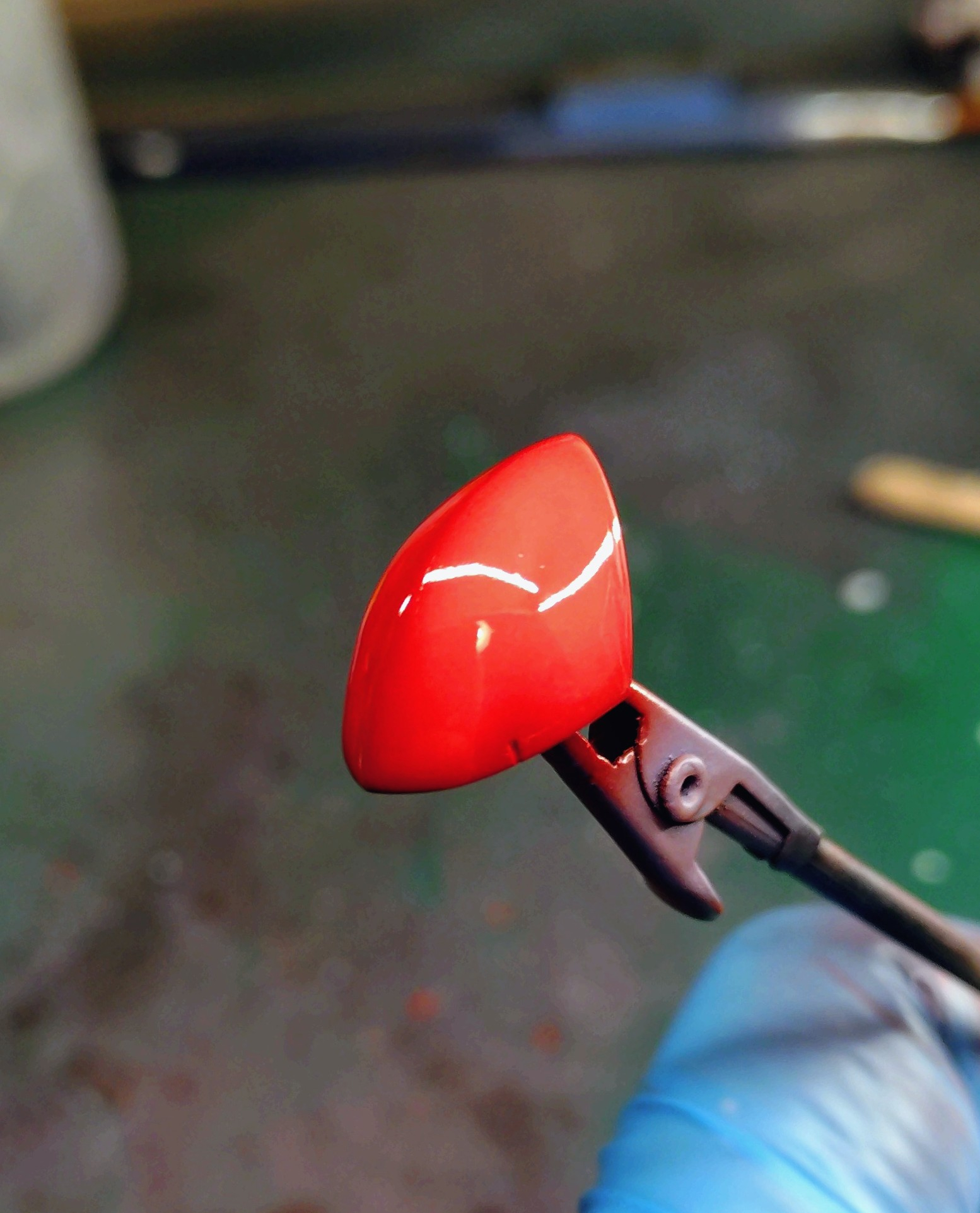 その上に、下地が透けるように(クリアレッドなど)をつやが出るように塗っていきます。