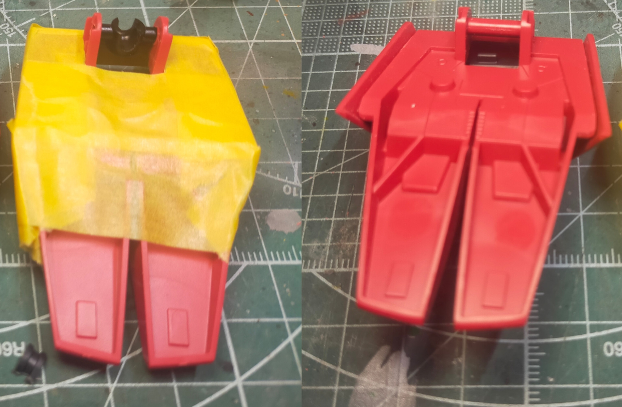立たせた際につま先が浮くのが気になっていたため、干渉するモールドを削り落とし、プラバンで仮設置