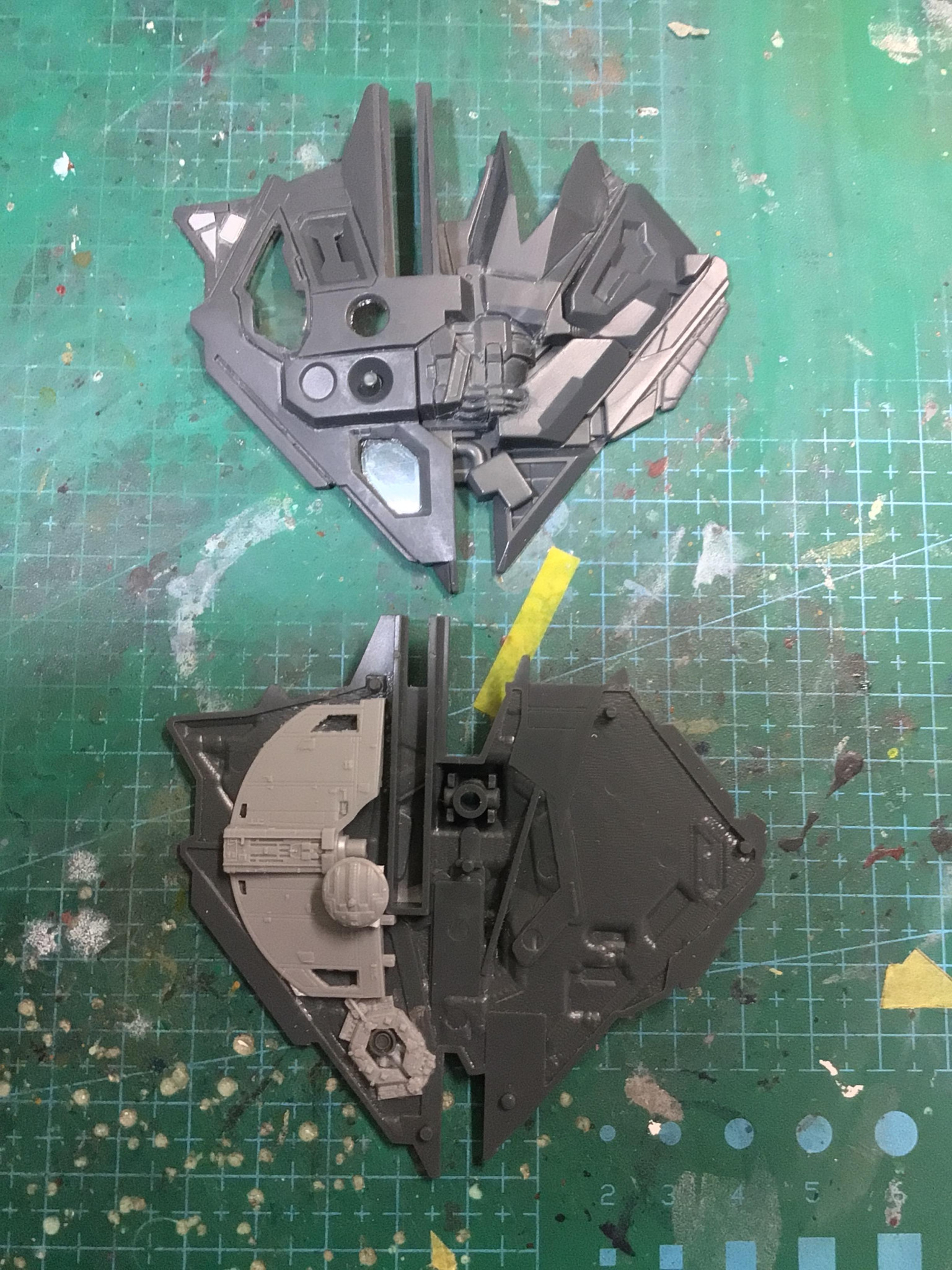 hakuitu 2026.01/06更新 1/144 ターンX 制作記 4 88 11 いいねしたモデラー(11) 0 作品を共有 ウェポンラックは中の空洞が大きかったので、ジャンクのゴチャゴチャメカディティールパーツを仕込みました。外からも見えるように外装を切り抜きして、透明プラ板に差し替えました。ほとんど見えなくなってしまいますがウェポンラックの裏面もスジボリ彫り直しとプラ板で凹凸とパネルラインを増やしました。手を入れた裏面がほとんど見えなくなるのは寂しいので、仕上がった状態を載せちゃいました(*´-`) 最後は工作終了の状態です。 制作中 1/144 ターンX 改造 筆塗り 筆塗り全塗装 コメント コメントをして応援しよう コメントにはログインが必要です hakuitu ただひたすらに筆塗り全塗装で仕上げています。 17 1/144 ターンX (SF) 旧キット 1/144 ターンXを改造して製作しました。シドミ… 17 ガンダムキャリバーン ホワイトの塗装の習作として作成しました。真っ白ではなく、兵器… 16 ストライクフリーダムガンダム(ver.ブルーホワイト) HGストライクフリーダムガンダムを「程良いマッチョかつ重厚感… 17 高機動型ネオ・ジオング 超高速・超火力を用いた単機での強襲による拠点制圧を目的にネオ… hakuituさんのページ この作品をお薦め作品に設定する Please login to update your profile! Please login to update your profile! Please login to update your profile! Please login to update your profile!