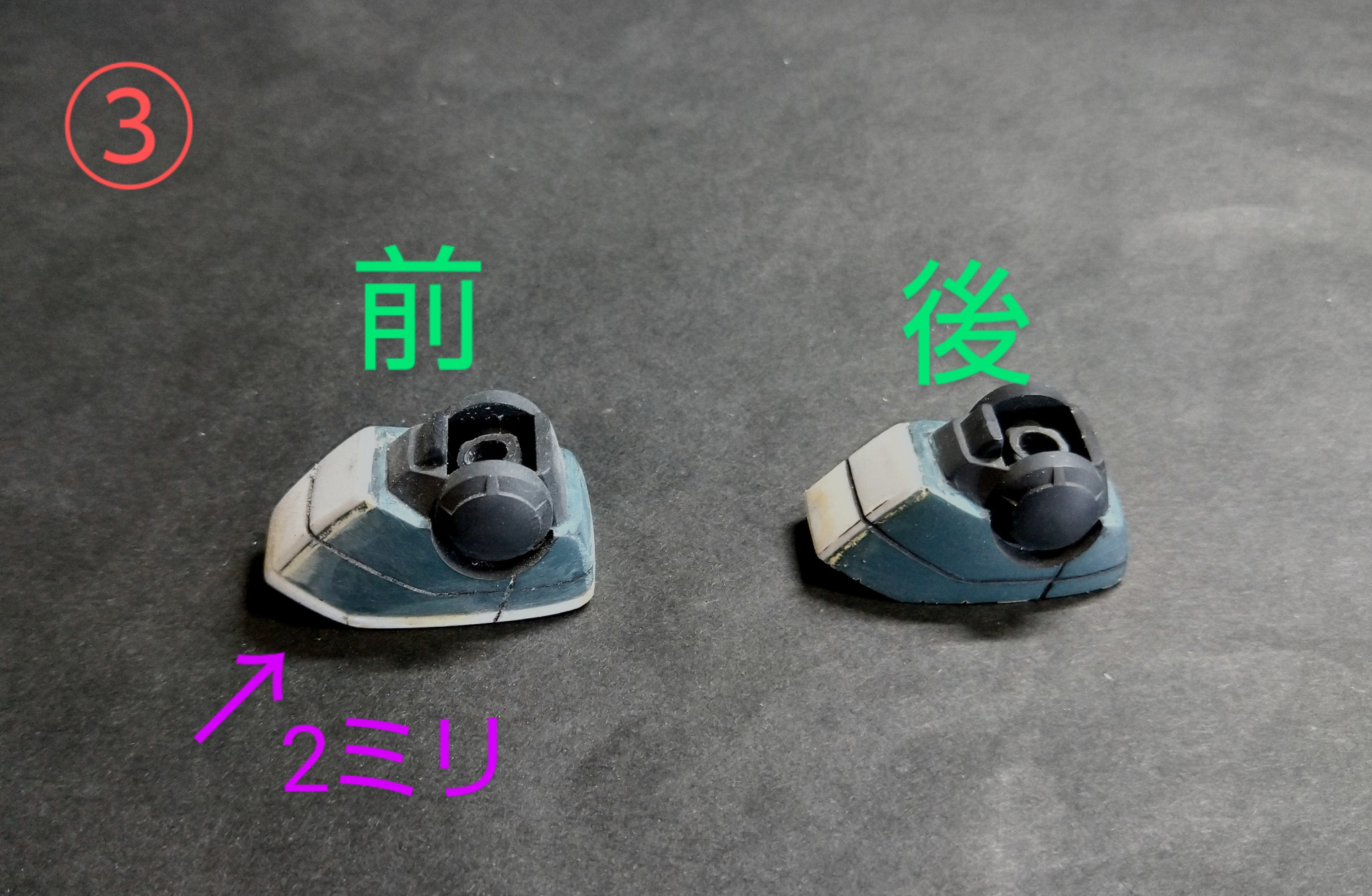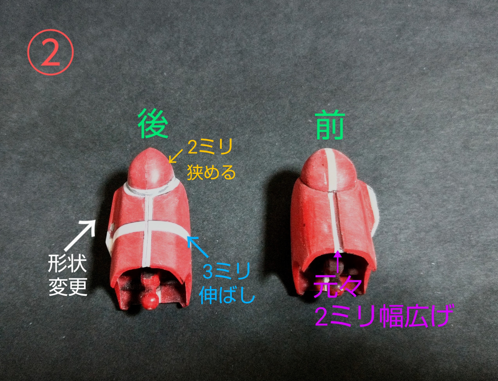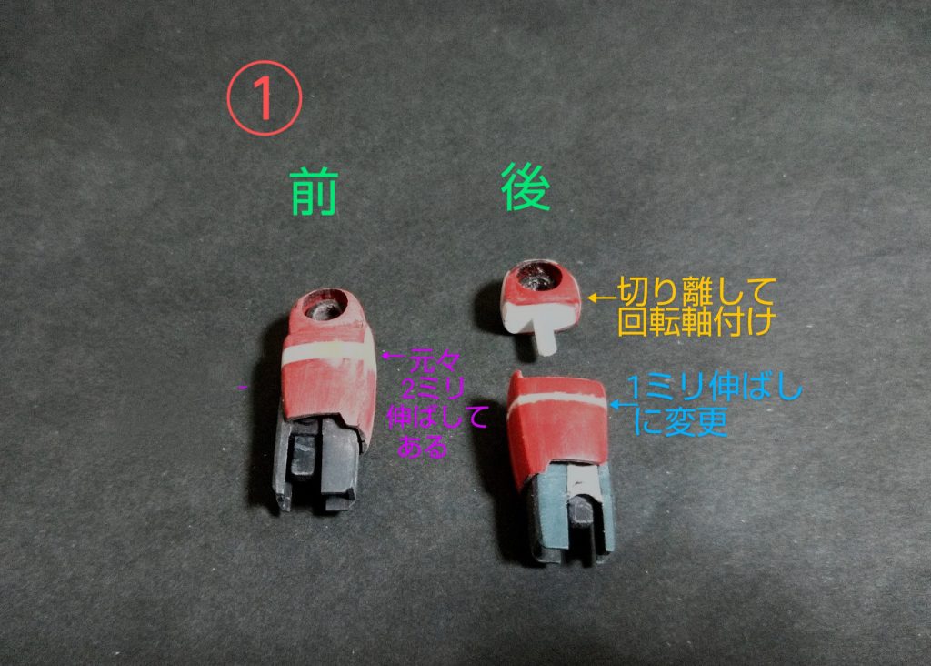 AKさん 2026.01/07更新 ガンキャノン脚部加工その1「作り直しのガンキャノン」制作中 0 52 いいねしたモデラー(52) 0 作品を共有 ガンキャノン脚部の加工になります! 昔作った物なので、本人もかなりどうやったのか忘れてまして💦塗装を剥がすところからのスタートになります💦 ①まずは腿から、元々2ミリ伸ばしてたのを1ミリに変更、そして股関節の取付け部を切り離して3ミリプラ棒を付けて可動化しました。 ②次は脛で元々2ミリ幅を広げてたのはそのままに膝だけ元の幅に、そして青の矢印のとこをプラ板で3ミリ伸ばします。 ③次は足首で元々2ミリ足裏を嵩上げしてたのを除去し前側プラ板足したのはそのままです。 その2へ続く🙏 制作中 HGUC ガンキャノン プロポーション変更 コメント コメントをして応援しよう コメントにはログインが必要です AKさん 小2でライブでファーストガンダムを見てからもう40年になります。 途中ミリタリーモデルと併用でガンプラを作ってました。 最近はファーストグレードガンダムから改造してジムバリエーション展開(リアルV作戦)をやってます。 特にジムのマニアックで人気の無い機体が大好きです! 8 明けましておめでとうございます🎊 皆様新年明けましておめでとうございます❗️ 今年も宜しくお願… 11 紅いガンダム 製作していたEGガンダムが完成しました。 皆様、私が紅組とゆ… 15 エアリアル改修型の改修型?🤔 イベント用に仕上げたエアリアル改修型を再塗装しました🤣 13 ブリッツガンダム魔改造 製作ストーリーで投稿していたブリッツガンダムが完成しました🤣 AKさんさんのページ この作品をお薦め作品に設定する Please login to update your profile! Please login to update your profile! Please login to update your profile! Please login to update your profile!