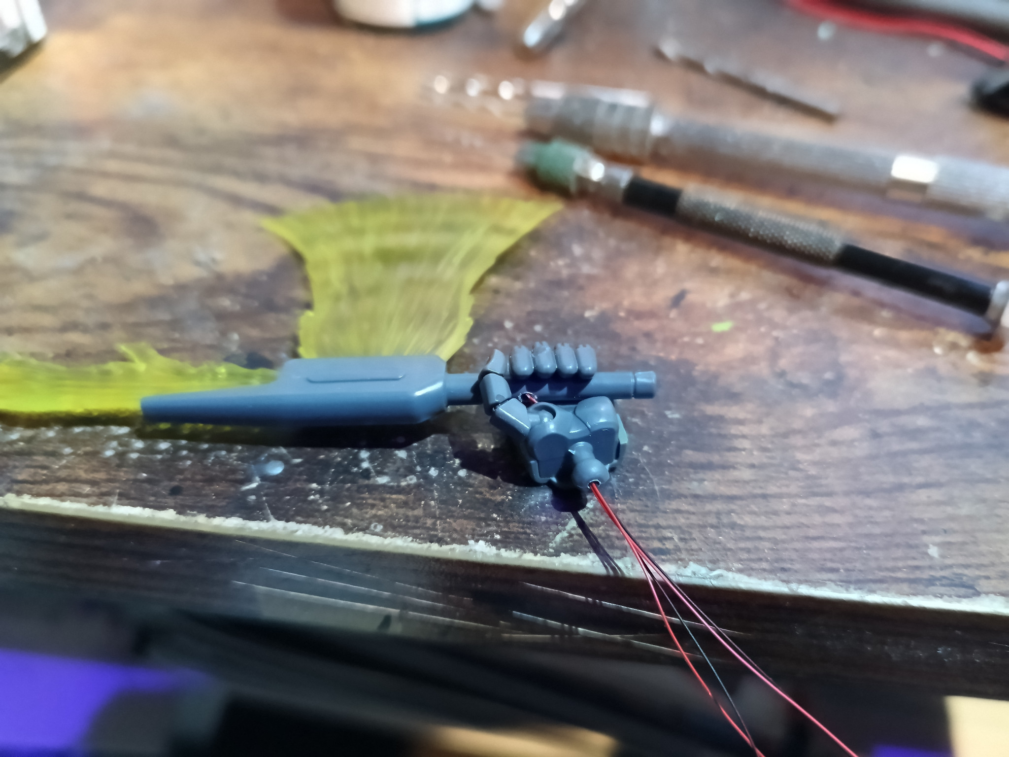 ありがとうございます😊当初は根本に1灯のつもりでテストしたらイマイチで🤔検討の結果サーベルとアックスに1灯ずつ入れました😁👍イイ感じです😁👍