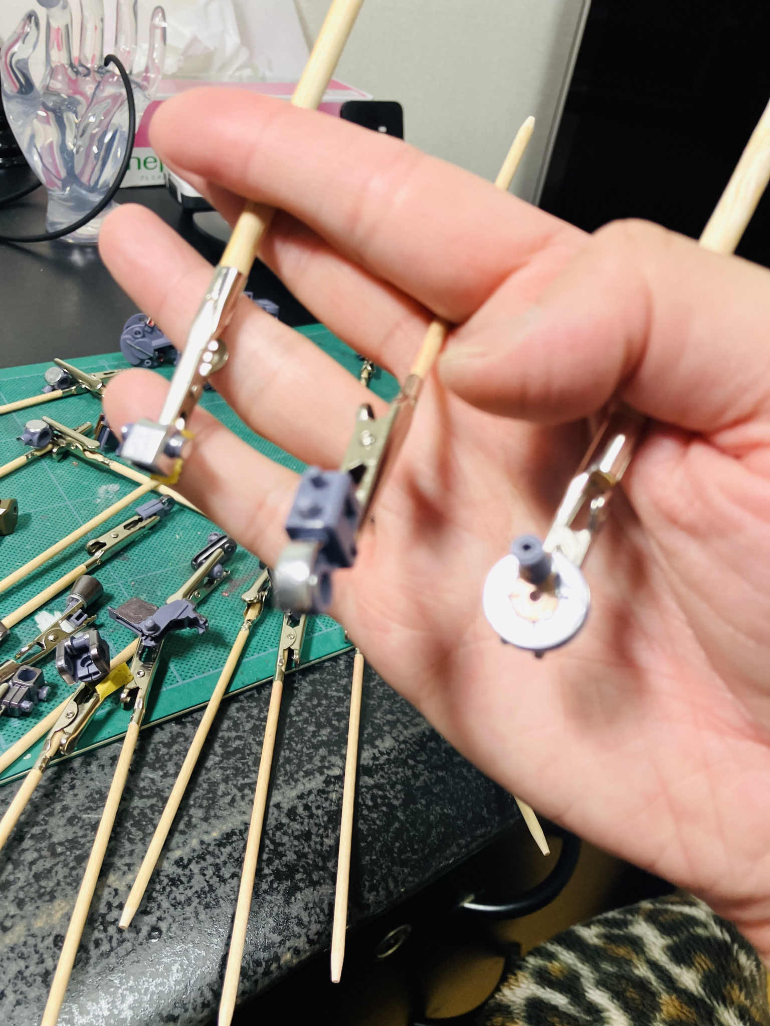 デカール貼って最後のトップコートを吹く前にちょこちょこっとリタッチしたりしてます😄、デカール貼ってる時に気付く😅。