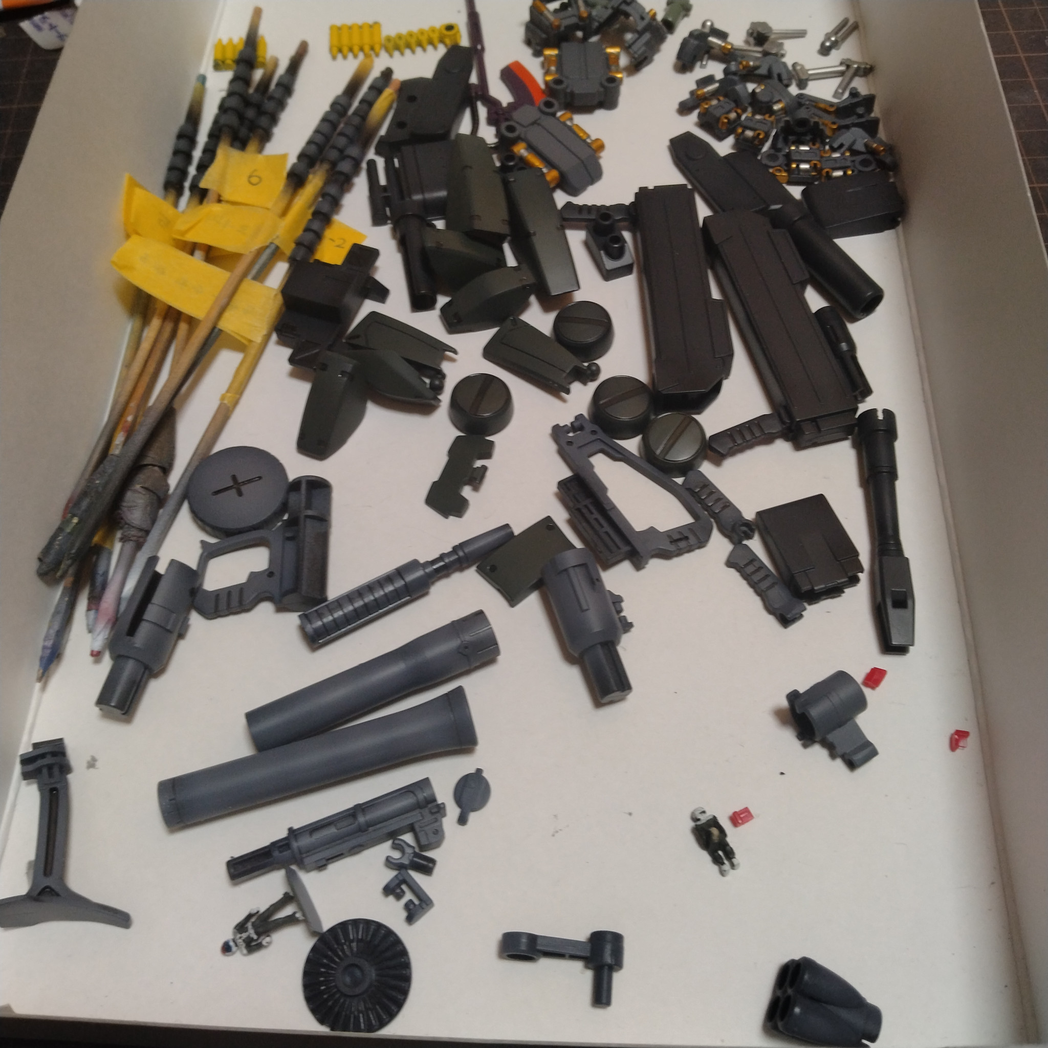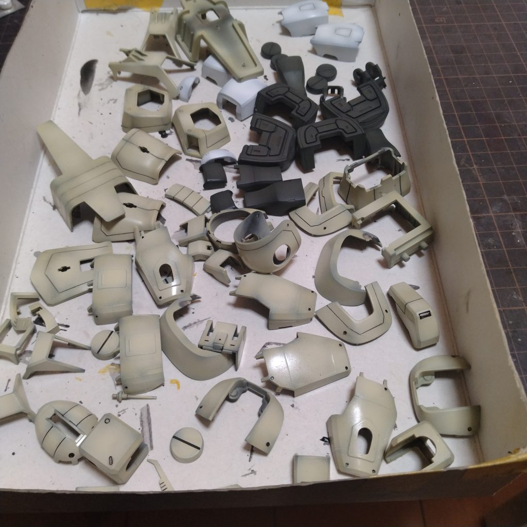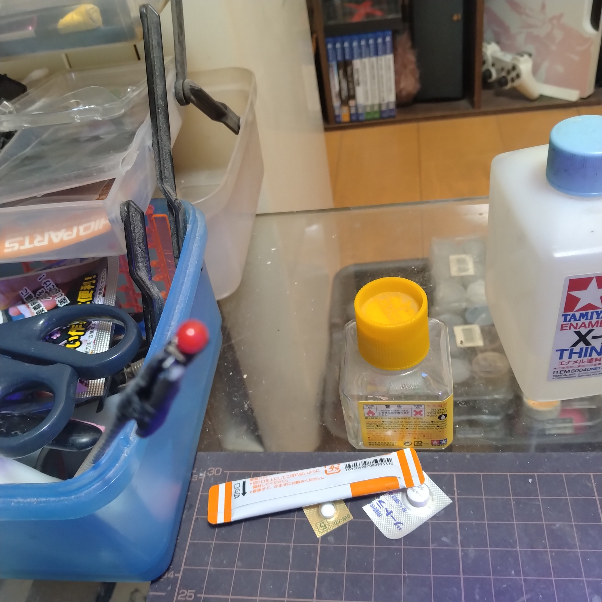 夜からやろうかと思ってましたが、墨入れまで終わらせました!😄それと普段なら変えるモノアイを今回はキットのままの物を使いました!そのままのモノアイにレジンを使い丸みを付けました!こうする事でブラックライトで照らした時に横からでも光って見えやすくなるので!😄3枚目と4枚目に画像載せておきました!ちょっと油断して薬まで写り込んでますがすみません!😅私の気のせいかもですがライトをあてた時の光り方が結構よい感じだと思うんです!😄これをやりたかったので厚みを出さない為にメタルプレートとHアイズを今回は使いませんでした!😀と、言うことで作業再開は夜からで、組み立てに入ります!😄