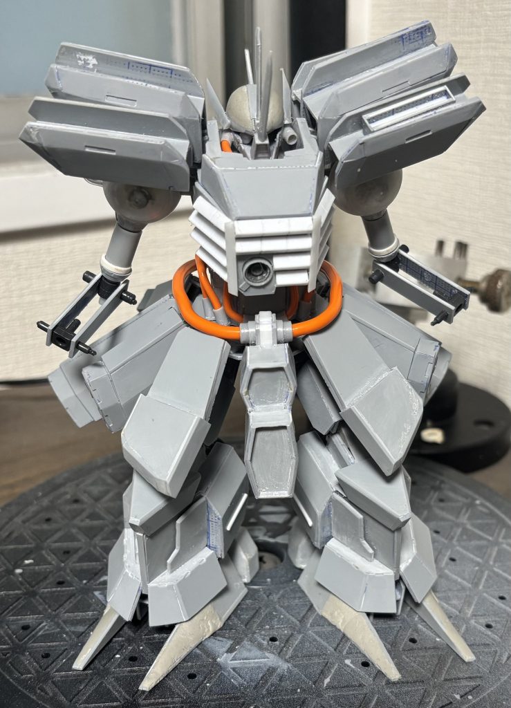 機動車両みたいなイメージの胴体にしたんで、突進力出てて良かった(zaku-kao2)まだ上半身もボリュームあがるのでバランスどうなるやらです
